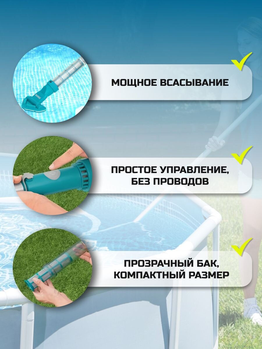- не требует подключения к фильтр-насосу или садовому шлангу.