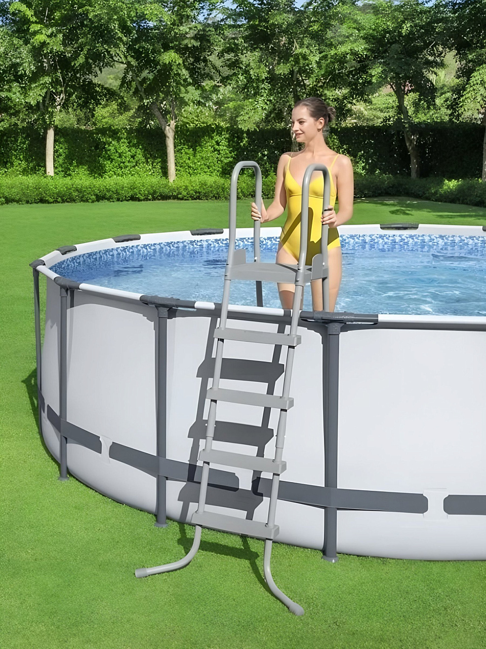 - Компактность: ширина лестницы всего 32.5 см, что позволяет экономить пространство вокруг бассейна.