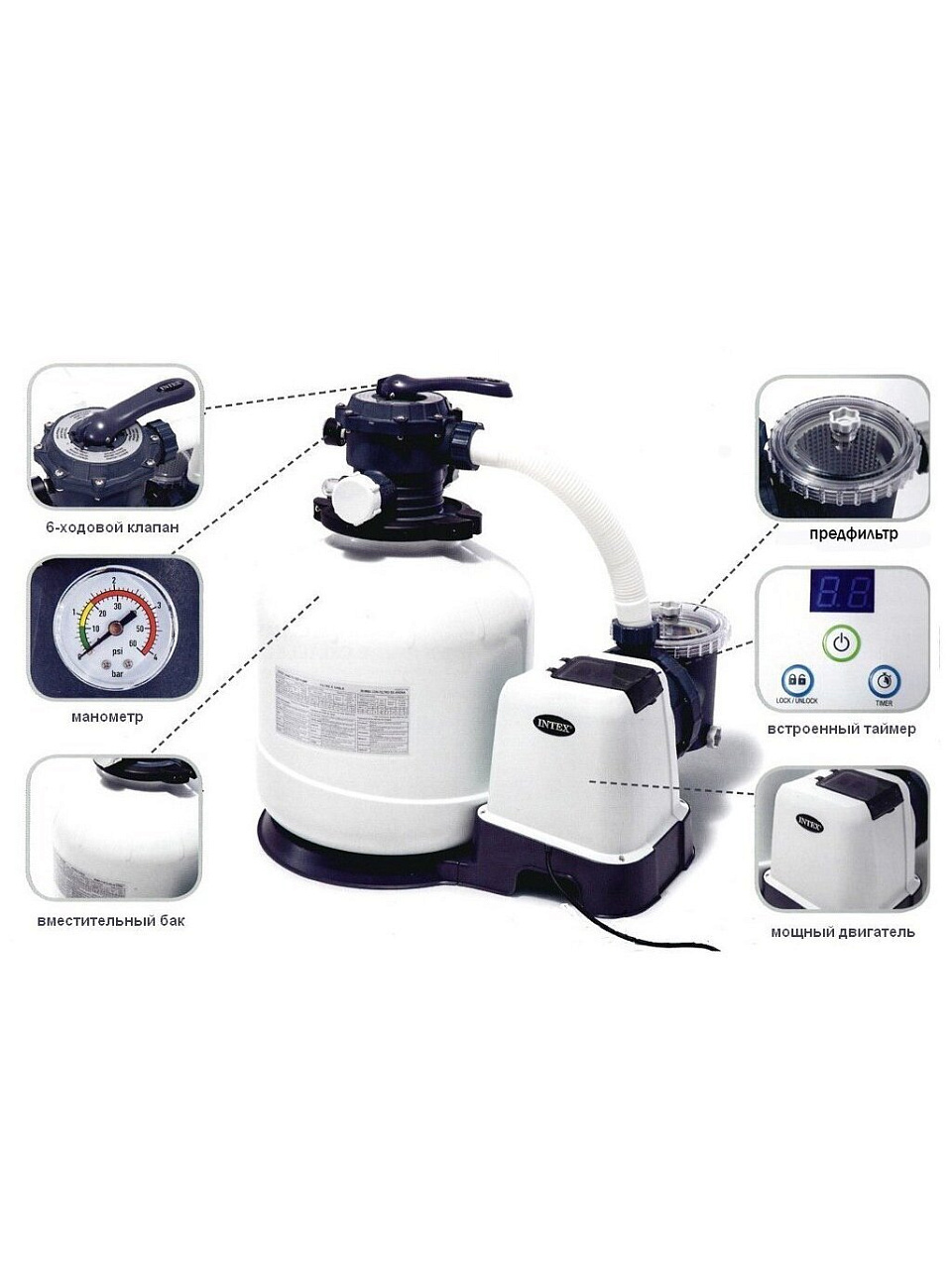 Откройте для себя эффективное и надежное решение для поддержания чистоты бассейна с песочным фильтр-насосом Intex 26644. Этот фильтр-насос предназначен для обеспечения кристально чистой воды в вашем бассейне, создавая комфортные условия для отдыха и развлечений. Благодаря высокой производительности и современным технологиям, он станет незаменимым помощником в уходе за бассейном.
