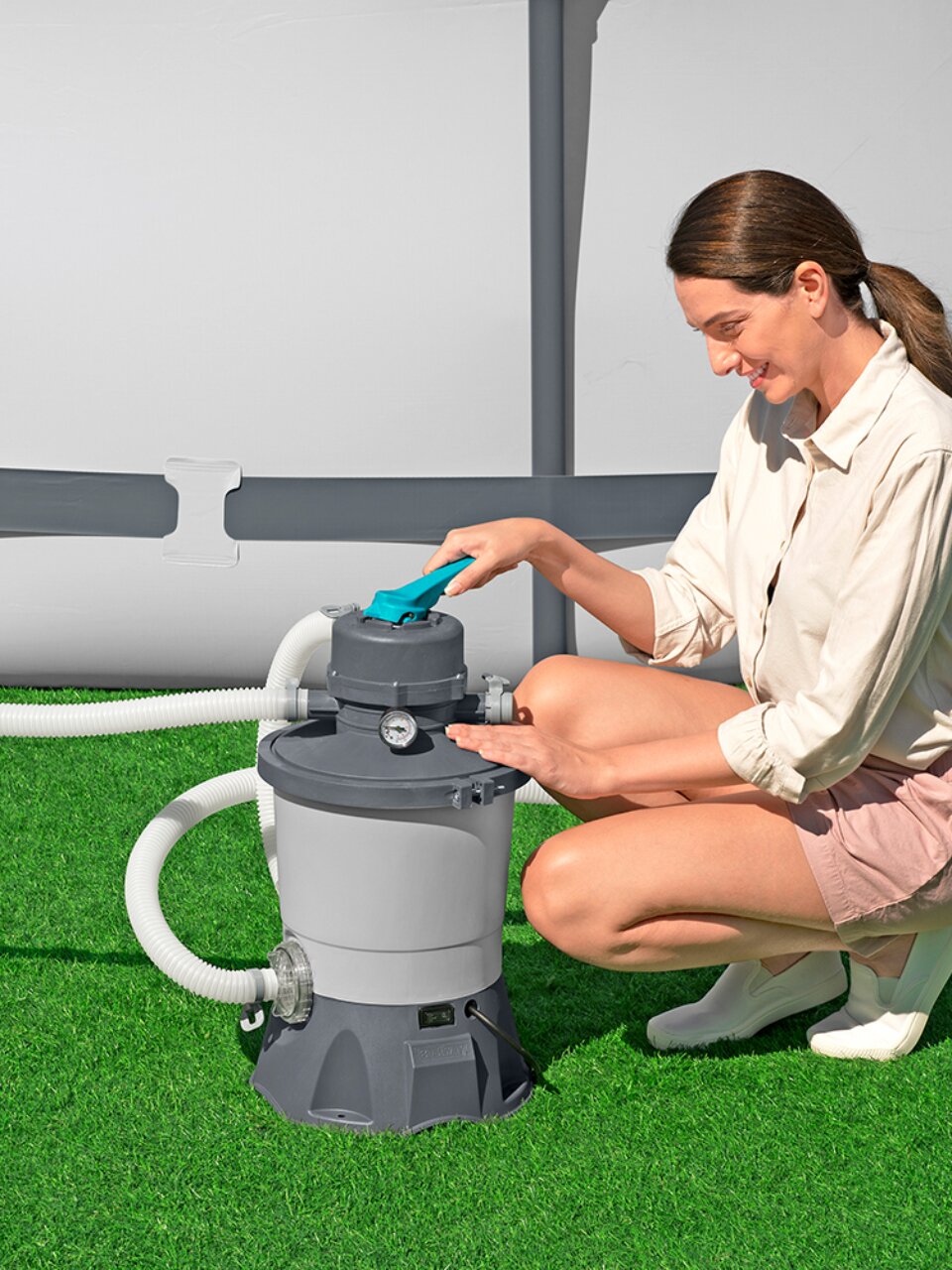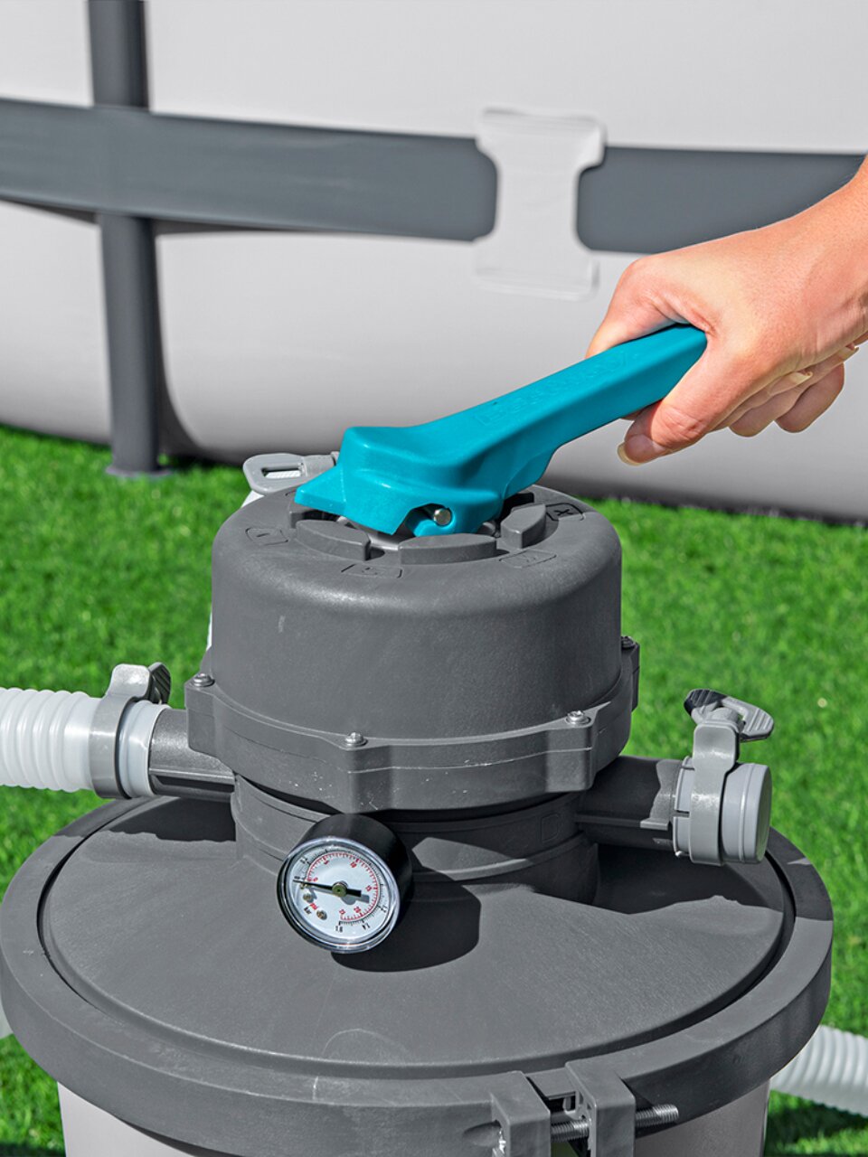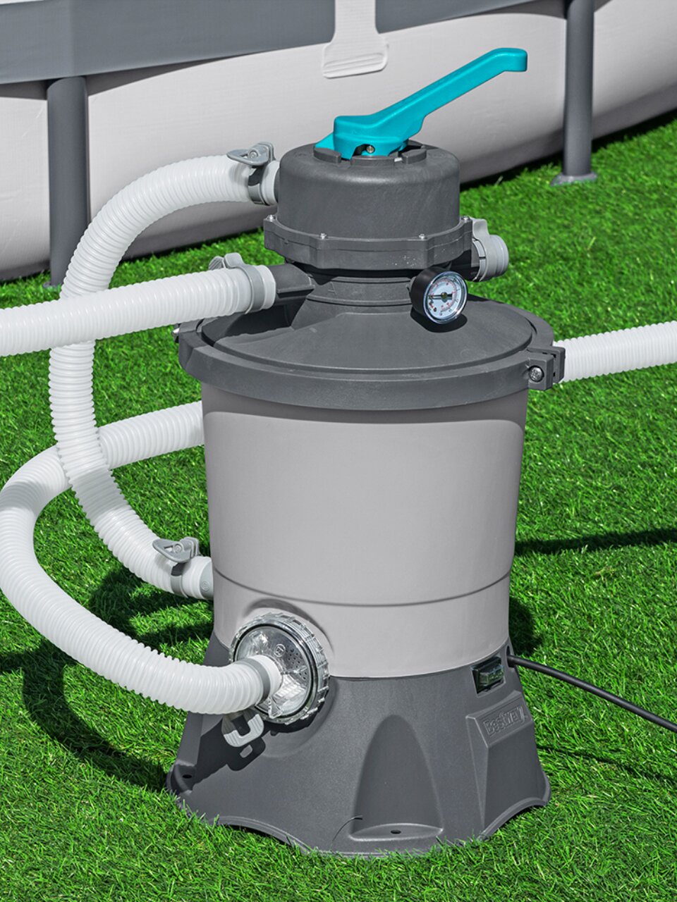 Песочный фильтр насос для бассейна Bestway может использоваться с круглыми бассейнами Intex и Bestway диаметром до 366 см.