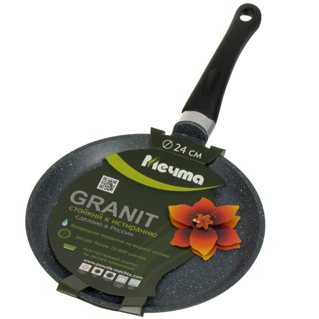 Вы можете приобрести «Блинница алюминий, 24 см, антипригарное покрытие, Мечта, Гранит, 14701, бакелитовая ручка» и другие товары в нашем интернет-магазине в Астрахани по низким ценам и с бесплатным самовывозом.