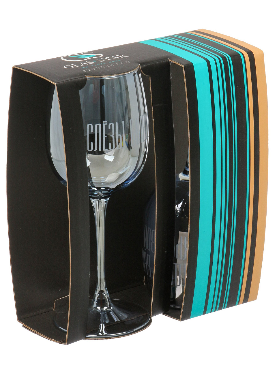 Бокалы для вина Glasstar, 420 мл, 2 шт — стильный подарок и практичный выбор для дома и дачи. Прозрачное стекло, оригинальный дизайн «Черное Море+Надписи Микс», подходят для посудомоечной машины.