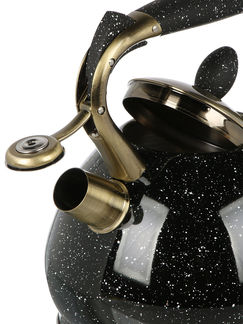 - Безопасность и комфорт: эргономичная ручка с нейлоновым покрытием не нагревается, а свисток подскажет, когда вода закипит