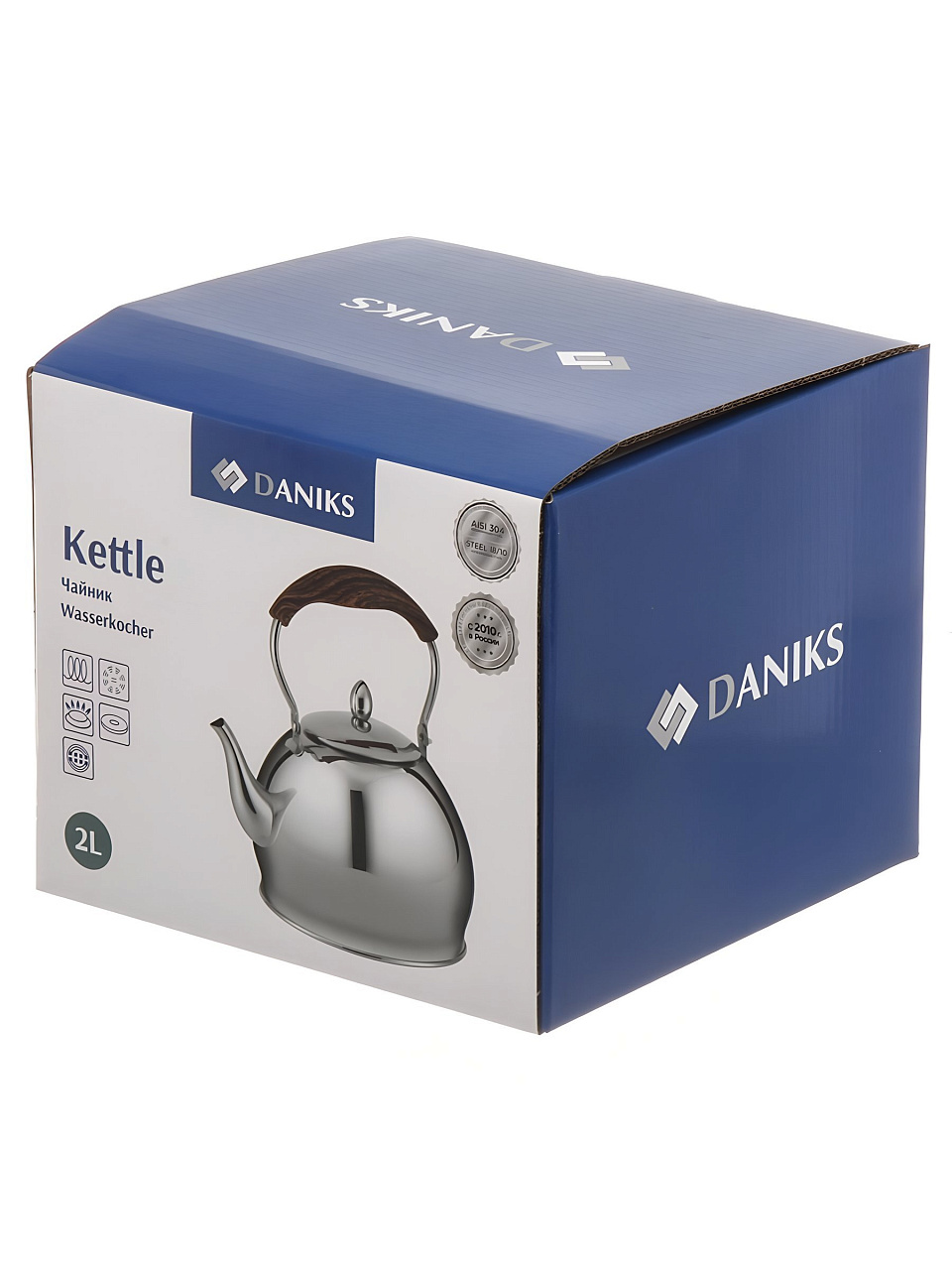 Чайник из нержавеющей стали Daniks 2 л: стильный зеркальный корпус, подходит для индукции, долговечен и легко моется — решение для дома и дачи.