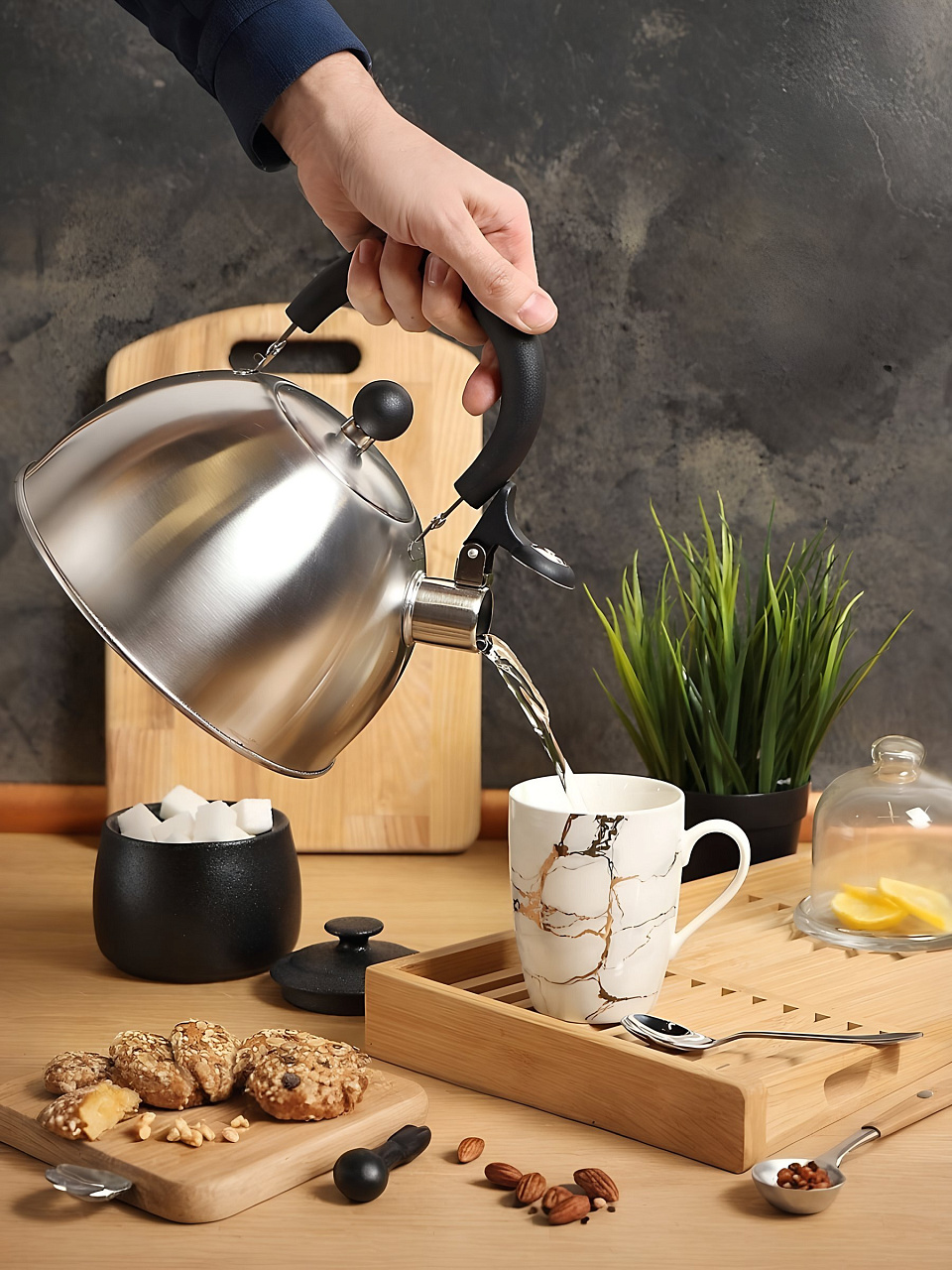 Многие спрашивают, подходит ли этот чайник для индукции — ответ: да, его капсульное дно специально разработано для таких плит. Пластиковая ручка с термоизоляцией защищает от ожогов, а свисток подскажет, когда вода закипела. В отличие от моделей с фильтром в носике, этот чайник проще мыть и обслуживать, что особенно удобно для дачи и ежедневного использования. Если вы ищете, что лучше для подарка — универсальный дизайн и серебристый цвет подойдут к любой кухне.