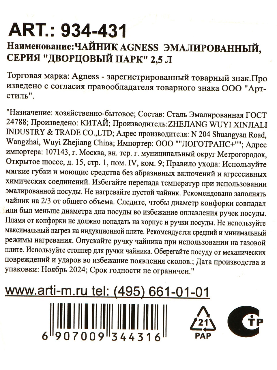 Вы можете приобрести «Чайник сталь, эмал, 2.5 л, Agness, Дворцовый парк, индукц, 934-431» и другие товары в нашем интернет-магазине в Серпухове по низким ценам и с бесплатным самовывозом.