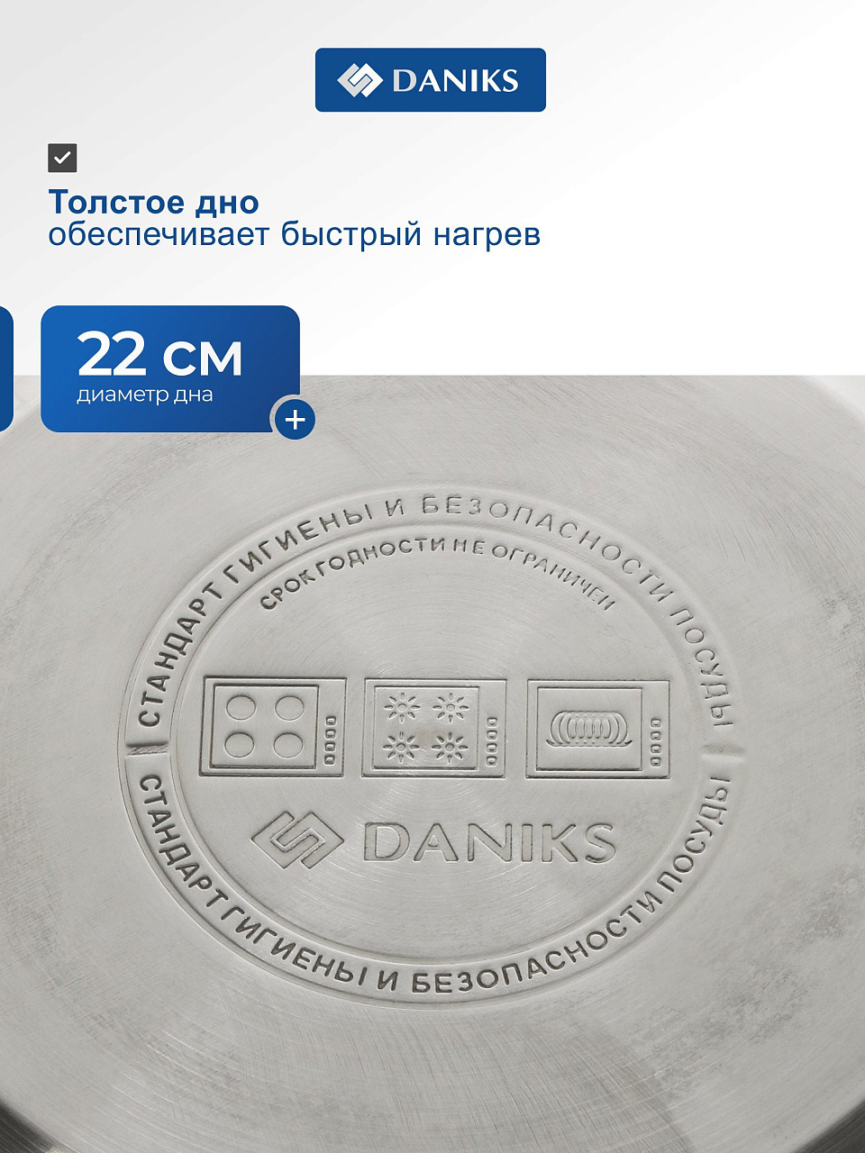 Daniks MSY-013R подходит для газовых, электрических и стеклокерамических плит, но не для индукционных. Многослойное дно обеспечивает равномерный нагрев и долговечность.