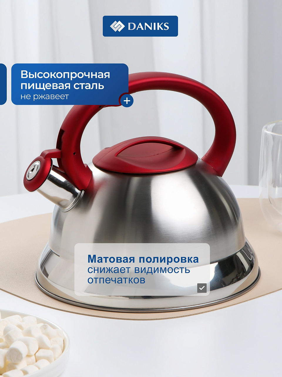 Вы можете приобрести «Чайник нержавеющая сталь, 2.8 л, со свистком, матовый, ручка с силиконовым покрытием, Daniks, красный, MSY-013R» и другие товары в нашем интернет-магазине в Липецке по низким ценам и с бесплатным самовывозом.