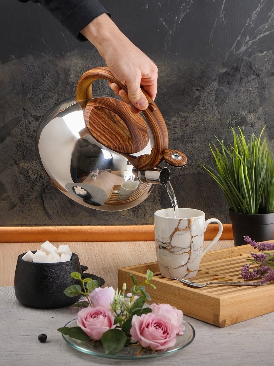 Нержавеющая сталь устойчива к коррозии, легко очищается, не впитывает запахи. Чайник объемом 3 литра удобно использовать для семьи, гостей или на даче – быстро закипает, не требует сложного ухода.