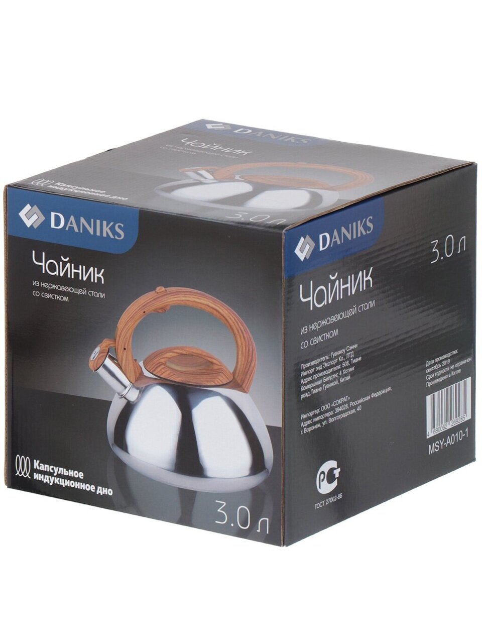 Вы можете приобрести «Чайник нержавеющая сталь, 3 л, со свистком, зеркальный, ручка бакелитовая в цвет дерева, Daniks, индукция, MSY-A010 -1» и другие товары в нашем интернет-магазине в Россоши по низким ценам и с бесплатным самовывозом.