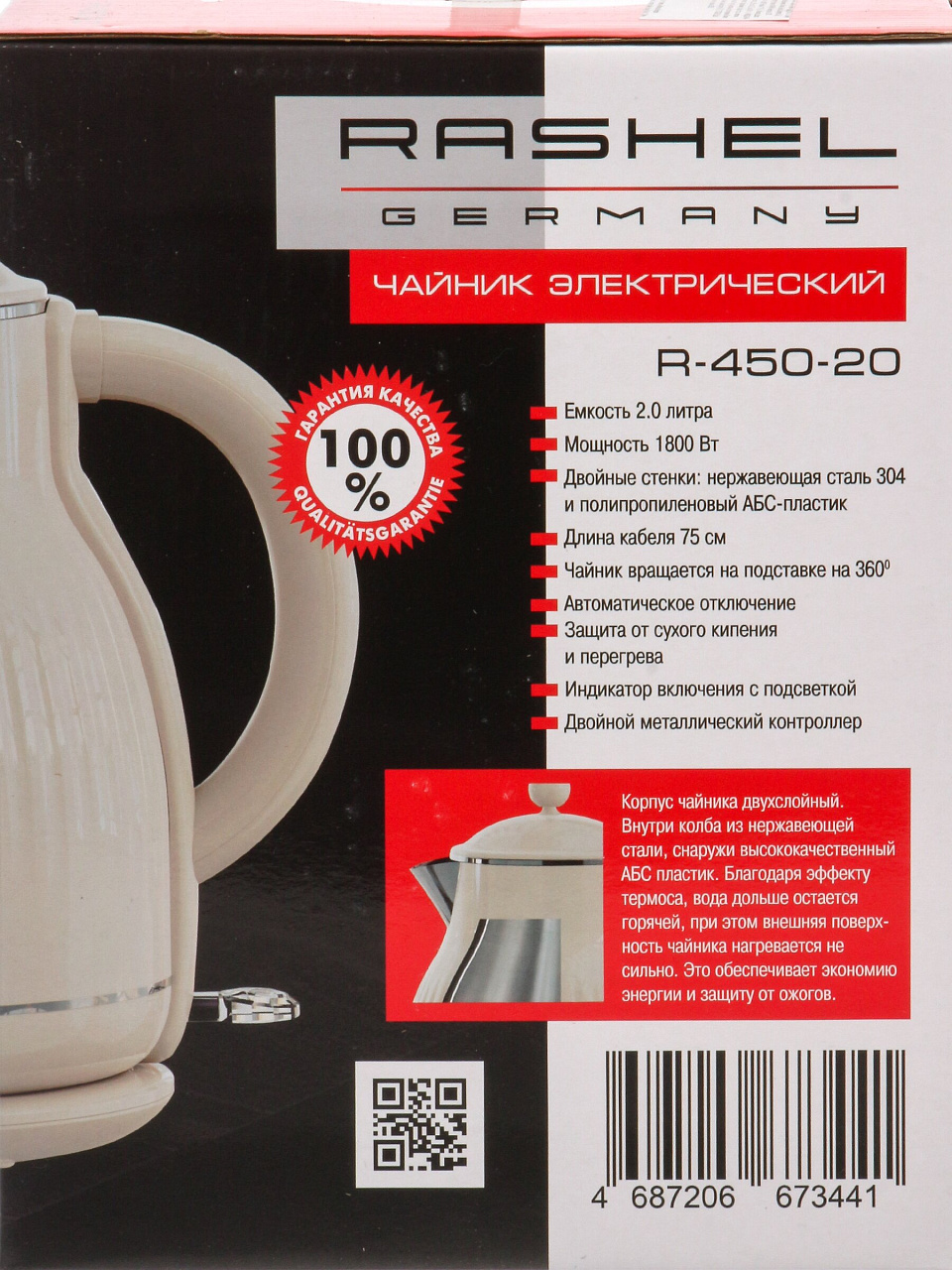 Выбирайте RASHEL R-450-20 и получайте надежный электрический чайник с гарантией производителя и бесплатной доставкой. Закажите сейчас — выгодные условия только в нашем интернет-магазине.