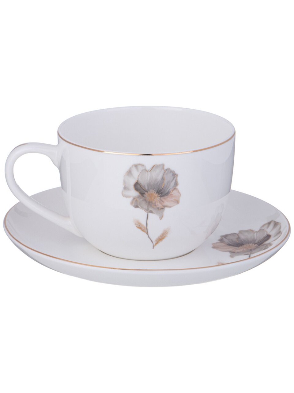 Чайная пара Lefard INSPIRATION Золотой цветок 380 мл: изысканный подарок для ценителей, идеальна для чая и кофе — фарфор премиум-класса в подарочной упаковке.