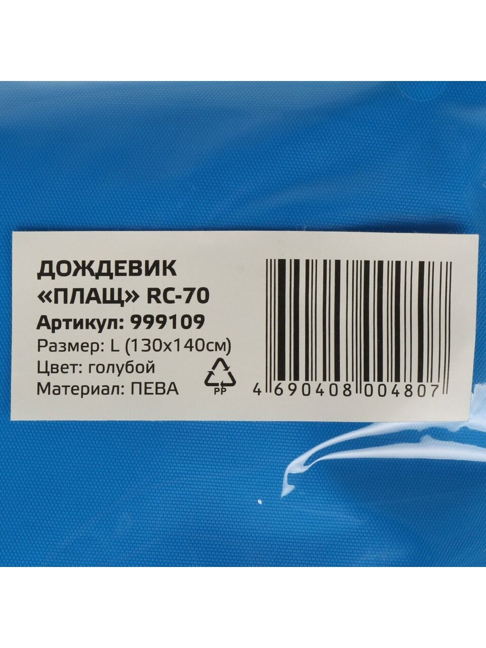 Дождевик плащ 130х140см голубой размер L RC-70 — стильная и надежная защита от дождя для прогулок, дачи и путешествий. Легкий материал ПЕВА обеспечивает комфорт, не сковывает движения и легко складывается. Универсальный размер L и удобный капюшон с застежкой на кнопках делают изделие практичным выбором для любого сезона.