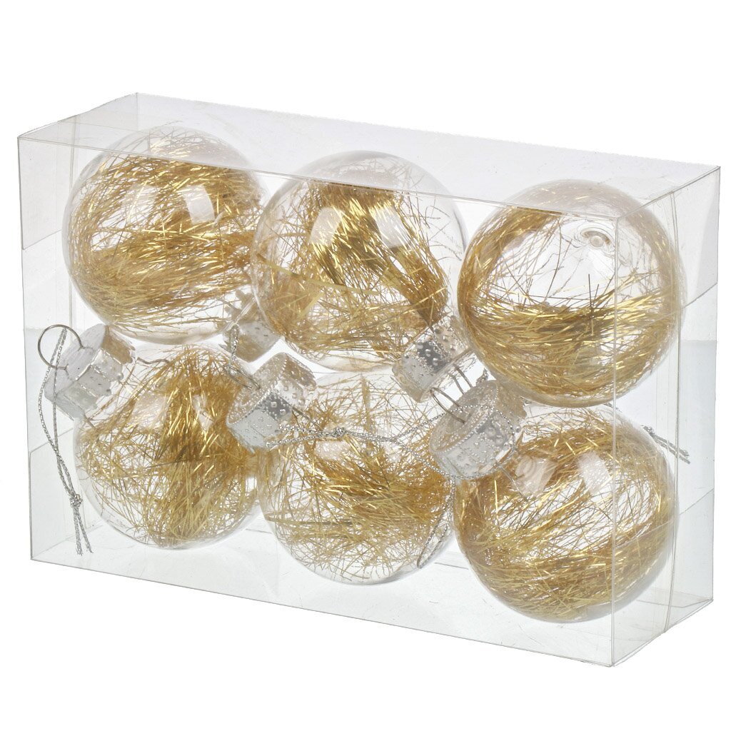 Эффектный набор шаров 6 шт, золото, 6 см: небьющийся пластик, прозрачные с наполнением — стильное решение для ёлки, подарка или декора дома.