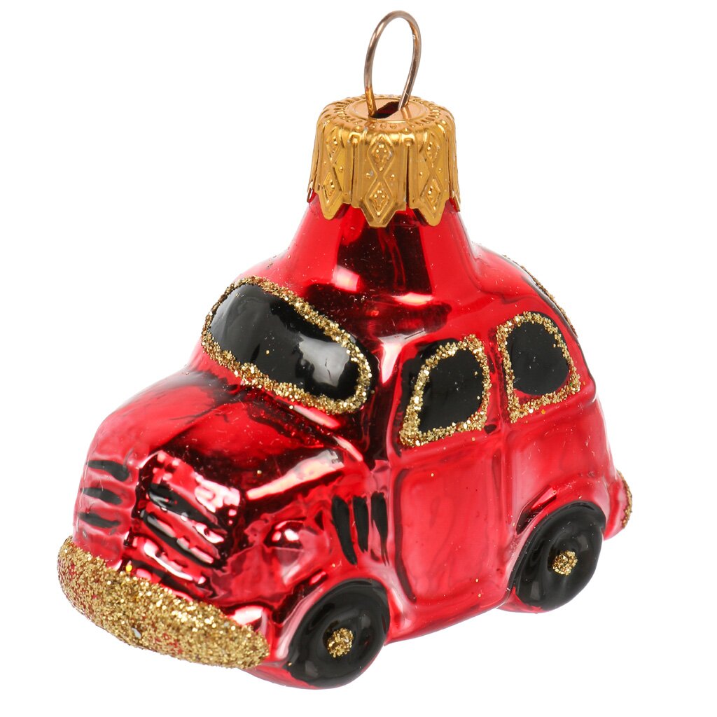 Елочное украшение Автомобиль ЗАЗ, 6 см, стекло, красный — стильный новогодний акцент для дома, дачи или подарка. Оригинальный дизайн, прочное стекло, безопасная упаковка.