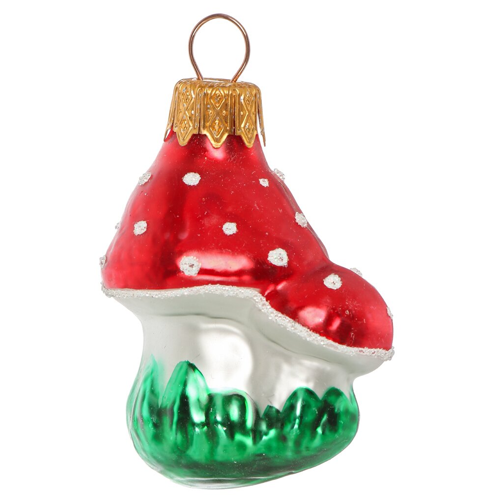 Яркое елочное украшение «Грибочки» из стекла: создайте атмосферу уюта и волшебства, выбрав эксклюзивный декор для новогодней елки или подарка.