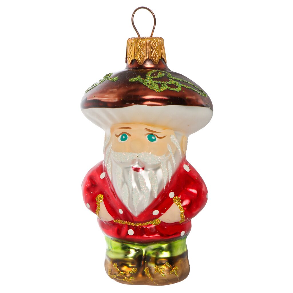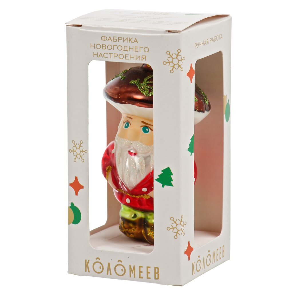 Елочное украшение Дедушка грибок 10 см из стекла — стильный акцент для новогодней елки, долговечность, яркий дизайн, идеальный подарок и уют в доме.