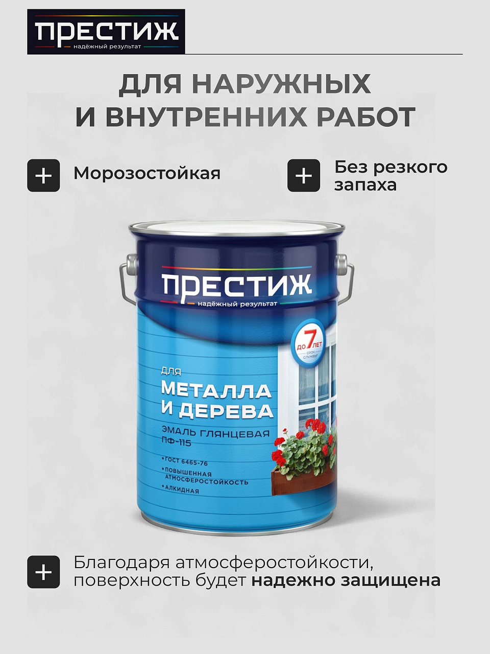 Эмаль Престиж ПФ-115 создана для обработки металлических, деревянных и других поверхностей как внутри, так и снаружи помещений. Она образует гладкое, глянцевое, устойчивое к атмосферным воздействиям покрытие, которое защищает и декорирует поверхность.