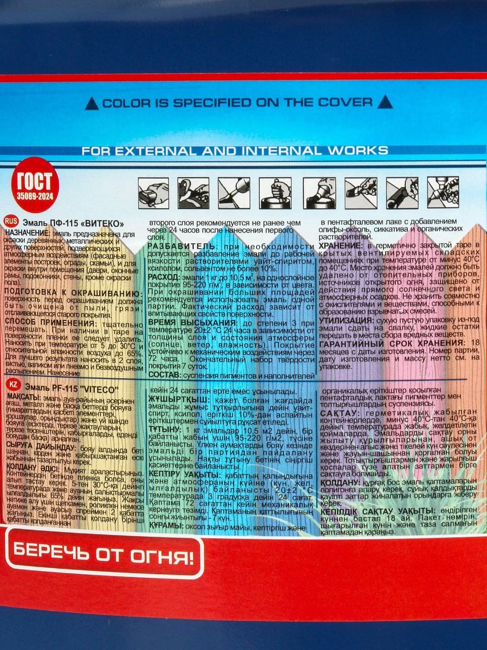 Назначение: для окраски металлических, деревянных и других поверхностей при выполнении наружных и внутренних отделочных работ, подвергающихся атмосферным воздействиям, и для окраски внутри помещений (кроме окраски пола).