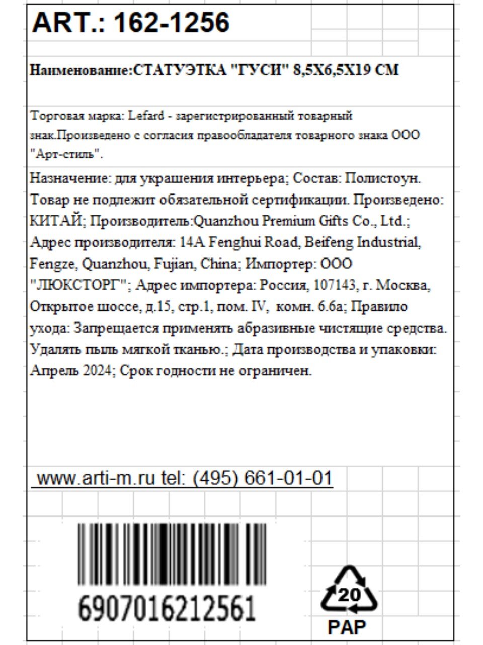 Вы можете приобрести «Статуэтка полистоун, Гусь, 8.5х6.5х19 см, Lefard, 162-1256» и другие товары в нашем интернет-магазине в Борисоглебске по низким ценам и с бесплатным самовывозом.