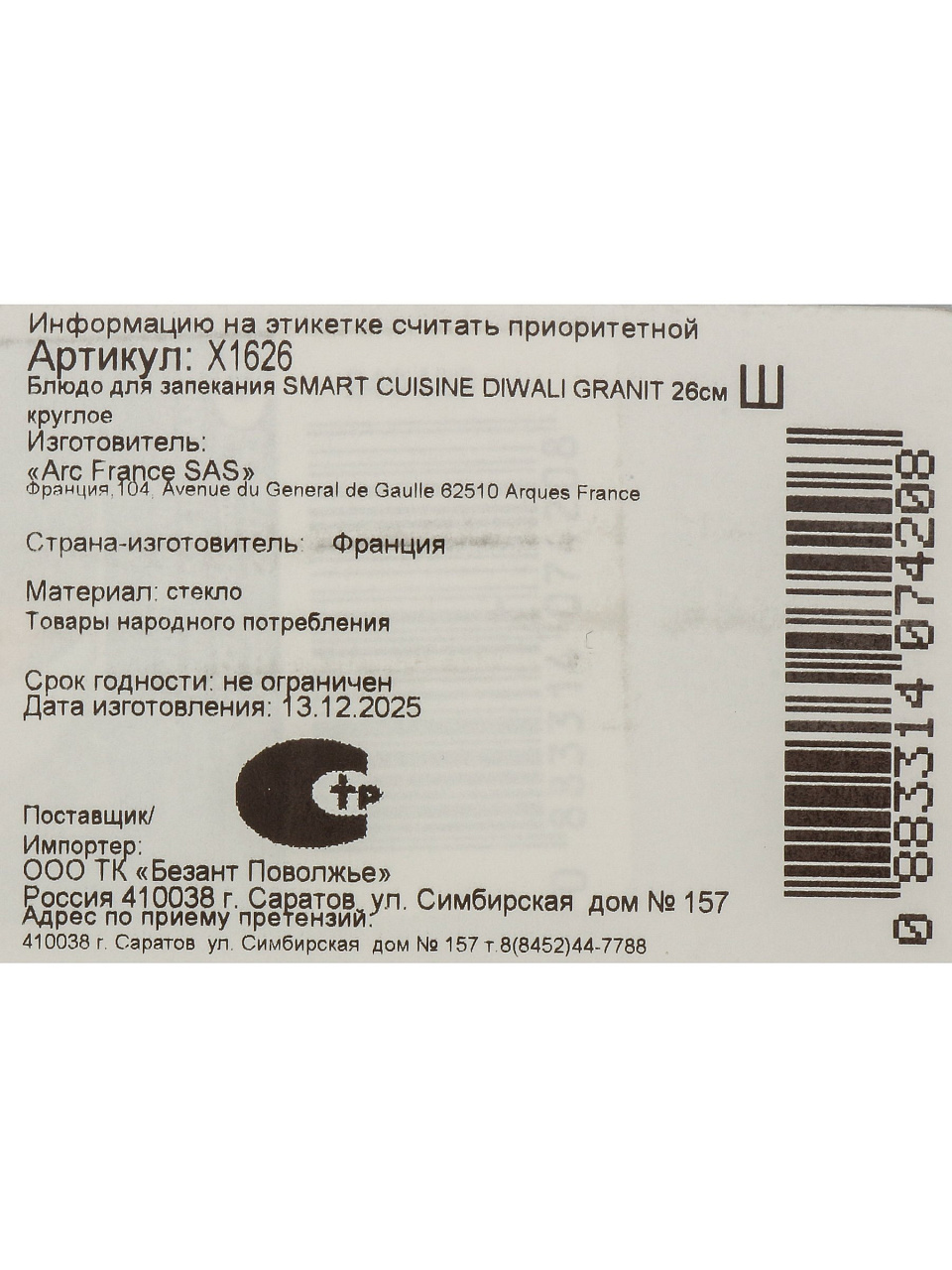 Вы можете приобрести «Форма для запекания стеклокерамика, 26 см, круглая, серая, Luminarc, Smart Cuisine Diwali Granit, X1626» и другие товары в нашем интернет-магазине в Железногорске по низким ценам и с бесплатным самовывозом.