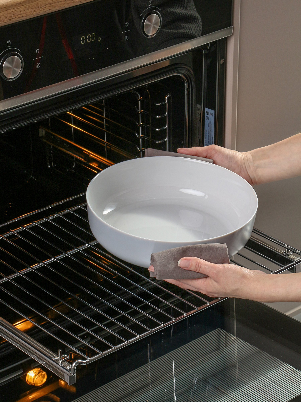 Стеклокерамика не впитывает запахи, устойчива к царапинам и легко моется в посудомоечной машине. Это универсальный выбор для приготовления пирогов, мяса, рыбы и овощей.