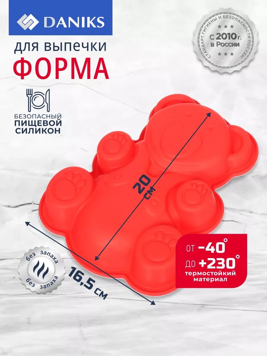 Силиконовая форма для запекания Daniks Медведь 16.5×20 см — яркое решение для детских тортов, муссов и домашних десертов. Безопасно для духовки и СВЧ, легко моется, идеальна для подарка.