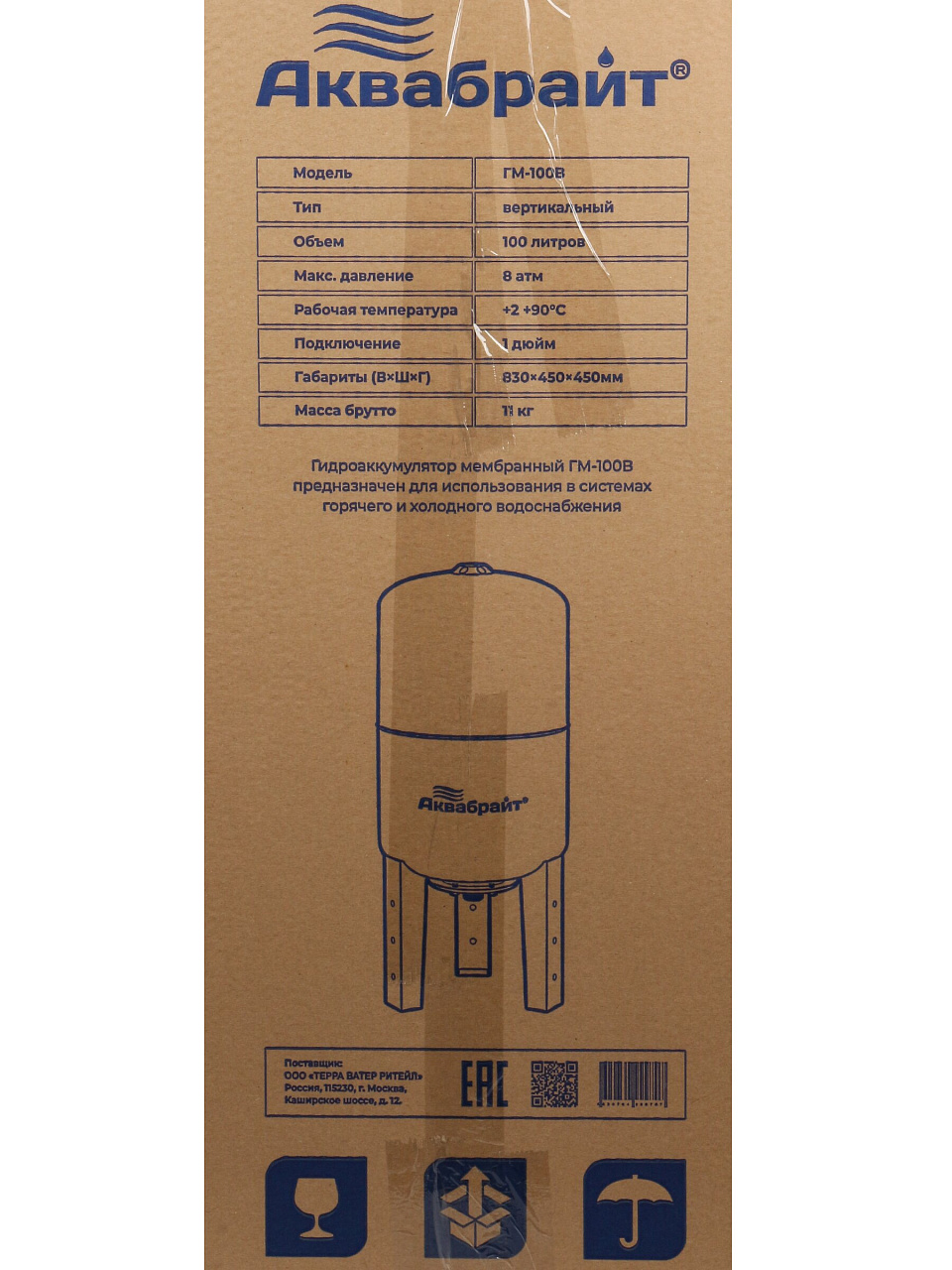 Гидроаккумулятор Аквабрайт вертикальный предназначен для систем холодного и горячего водоснабжения. Гидроаккумулятор нужен для поддержания оптимального давления в системе водоснабжения, накопления воды и защиты работы насоса от частых пусков, защита от гидроударов. Объем бака - 100 литров.