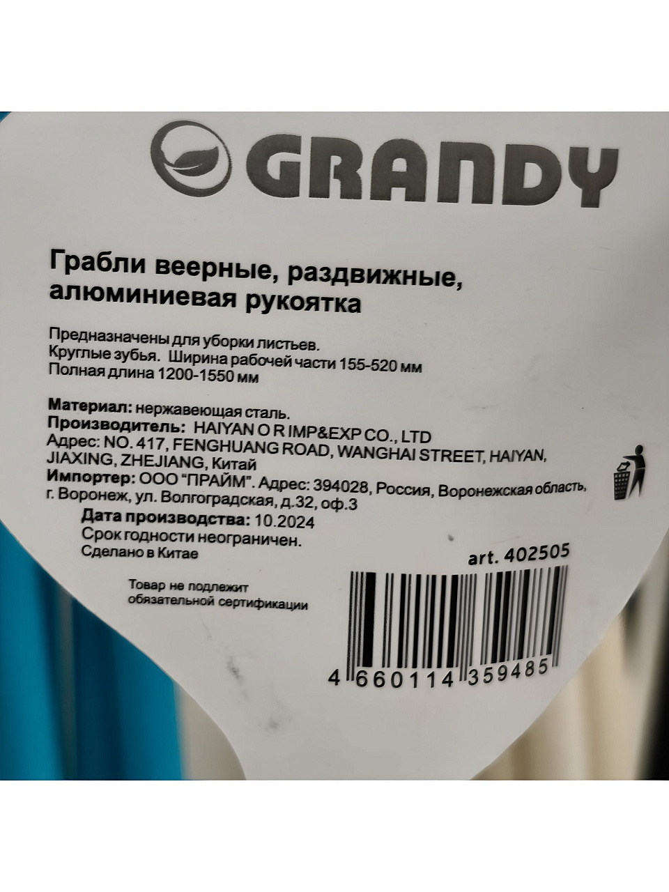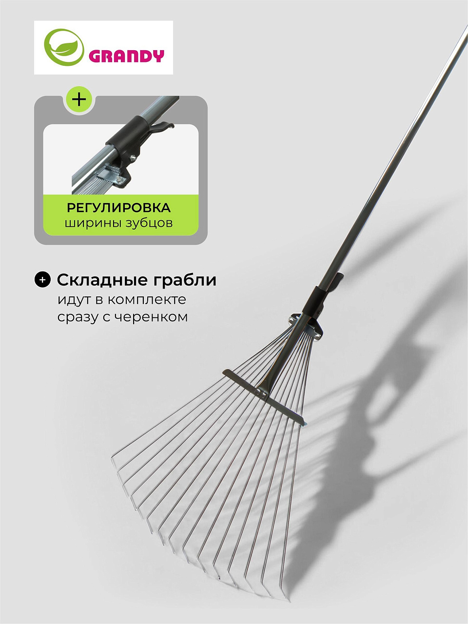 Вы можете приобрести «Грабли веерные, 15 зуб, металл, 52 см, Grandy, Grandy, 15.5-52х120-155 см, раздвижной, черенок металлический, 402505» и другие товары в нашем интернет-магазине в Шахтах по низким ценам и с бесплатным самовывозом.