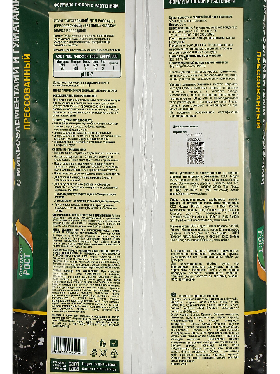 Вы можете приобрести «Грунт Крепыш, для рассады, брикетированный, питательный, 25 л, Фаско» и другие товары в нашем интернет-магазине в Липецке по низким ценам и с бесплатным самовывозом.