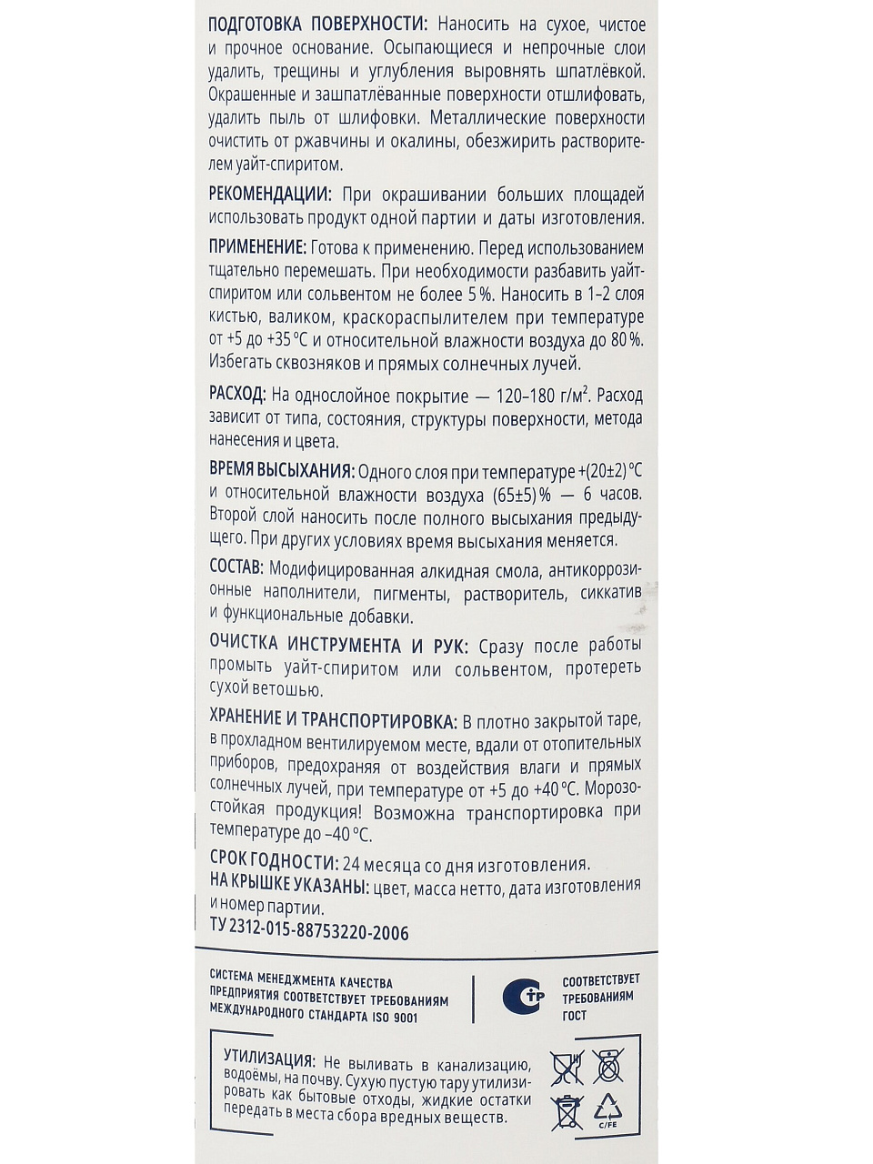 - Алкидная основа, вес 0.8 кг, подходит для нанесения кистью, валиком или краскопультом на заборы, ворота, решётки, сталь, чугун и алюминий.