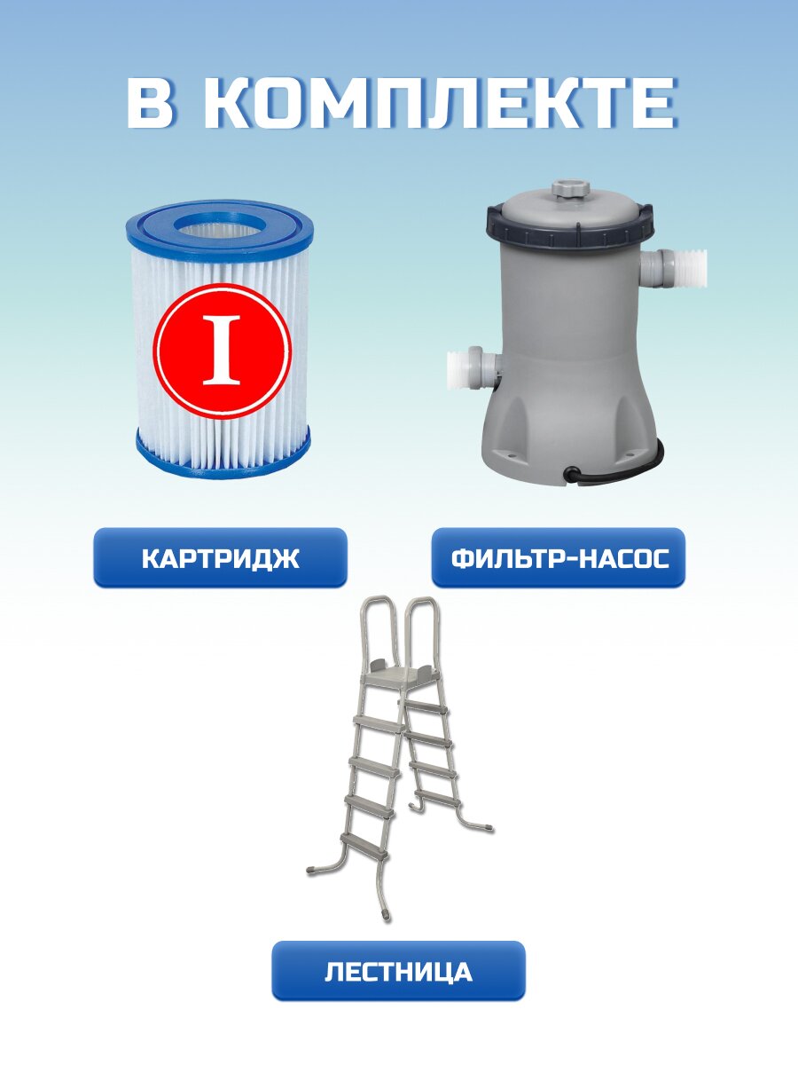 - в комплекте фильтр-насос производительностью 2006 л/ч для чистой и прозрачной воды;
