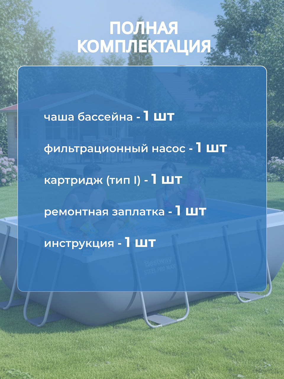 Оформите заказ прямо сейчас — получите оригинальный бассейн Bestway Power Steel с фильтр-насосом по выгодной цене и официальной гарантией. Наслаждайтесь летом без хлопот!