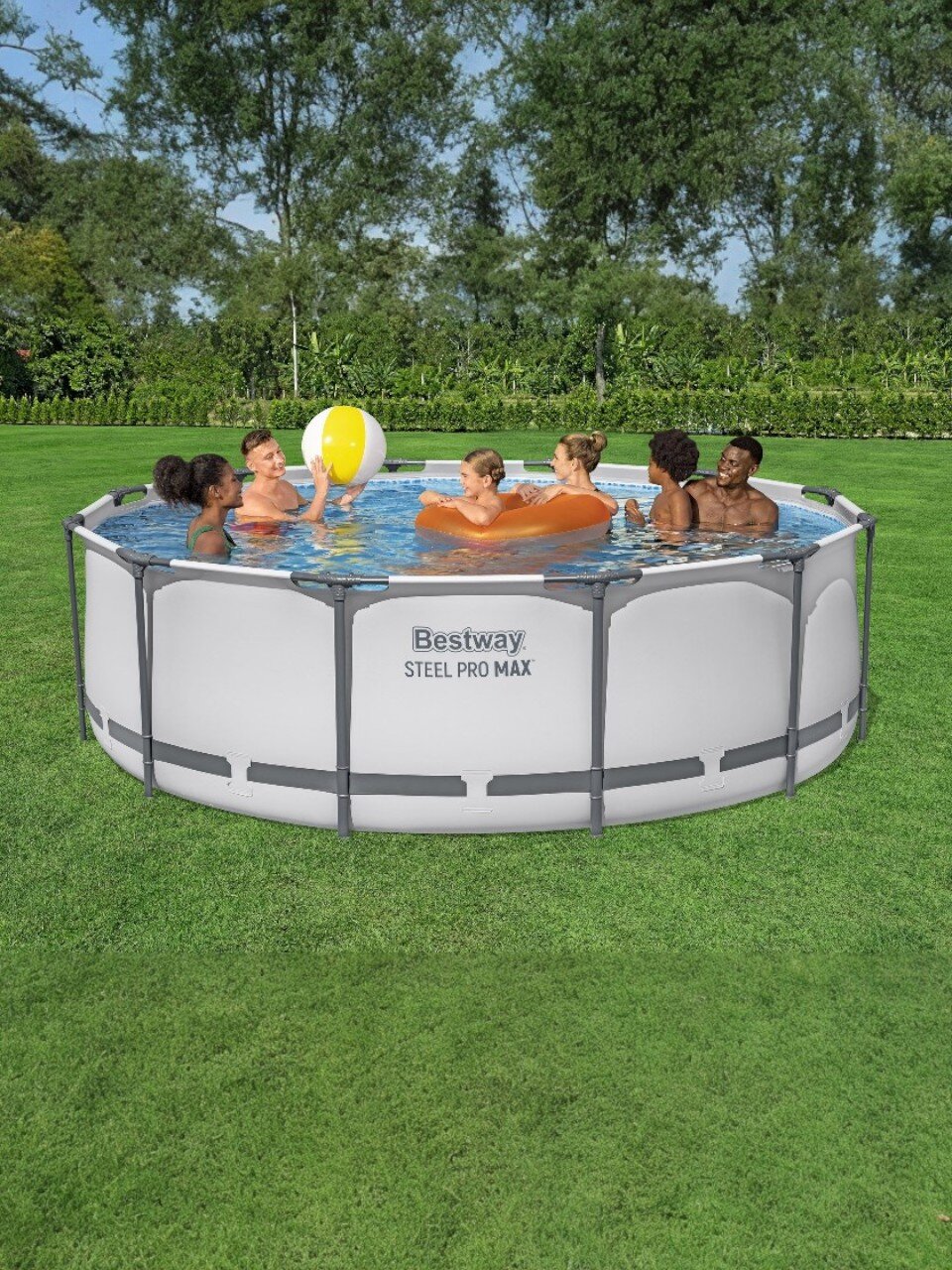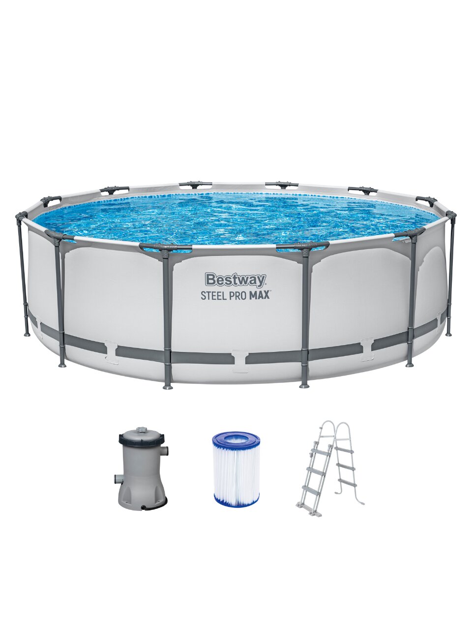 Вы можете приобрести «Бассейн каркасный Bestway, 366х100 см, Steel Pro Max, 56418BW, фильтр-насос, лестница, 9150 л, картридж» и другие товары в нашем интернет-магазине в Железногорске по низким ценам и с бесплатным самовывозом.