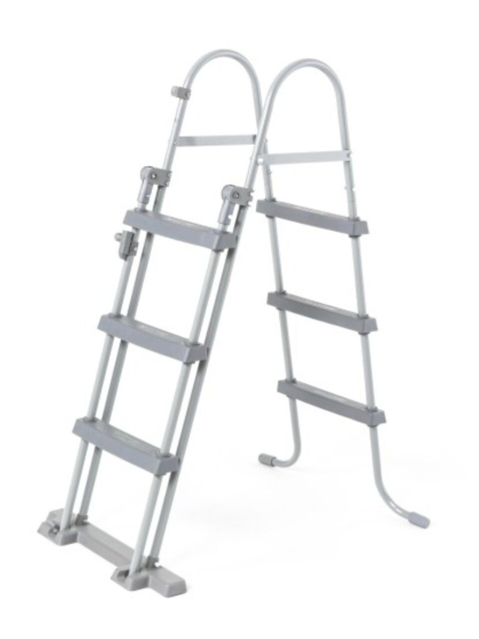Бассейн комплектуется лестницей. Ее высота составляет 107 см.