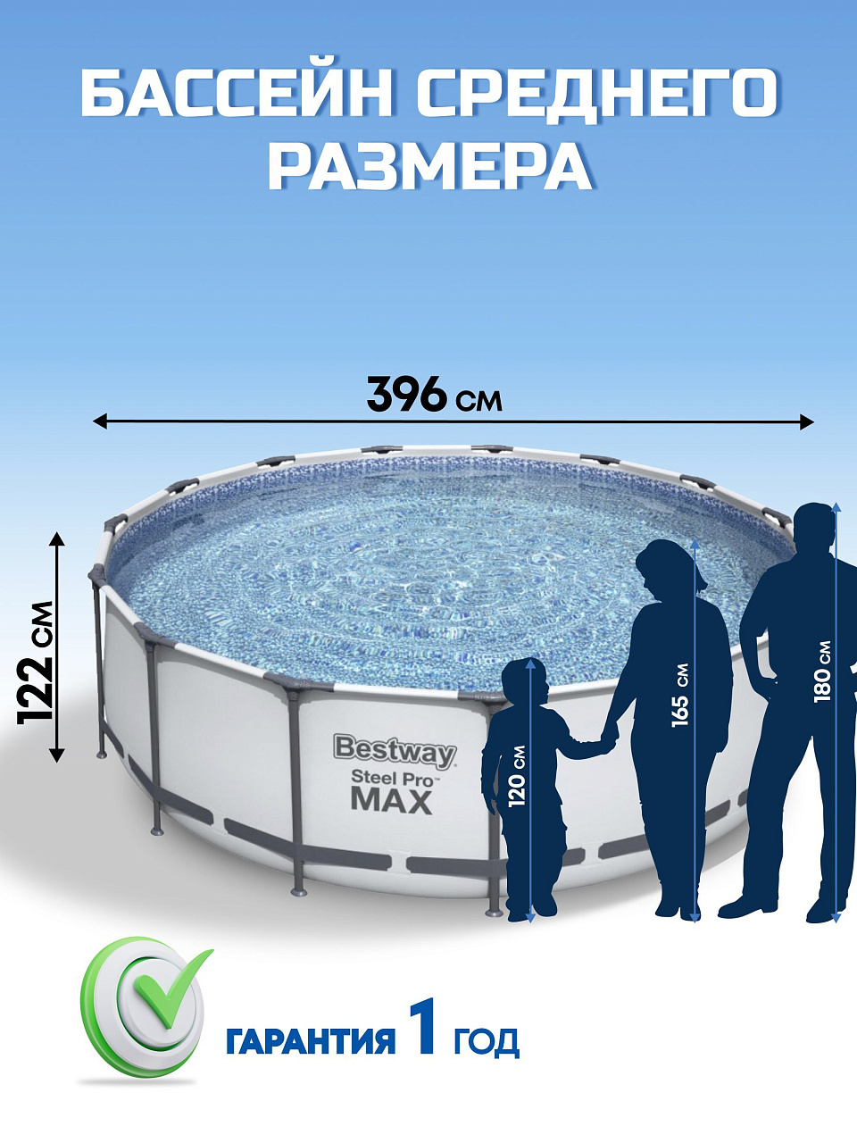 Вы можете приобрести «Бассейн каркасный Bestway, 396х122 см, Steel Pro Max, 5618W, фильтр-насос, лестница, тент, 12690 л» и другие товары в нашем интернет-магазине в Борисоглебске по низким ценам и с бесплатным самовывозом.