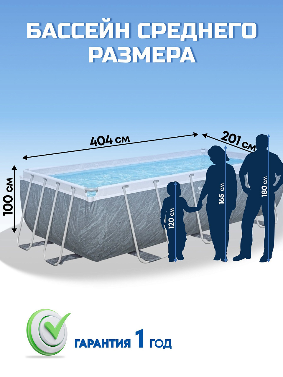 - Удобство использования: в комплекте идет лестница высотой 107 см, рассчитанная на нагрузку до 150 кг, что делает вход и выход из бассейна безопасным и комфортным.