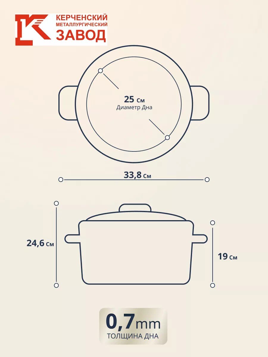 Кастрюля рассчитана на 9 литров, диаметр 25 см, что удобно для приготовления супов, борщей, компотов и заготовок на семью из 4-6 человек.