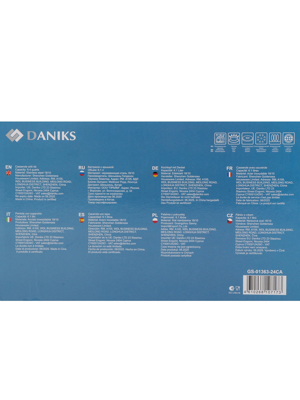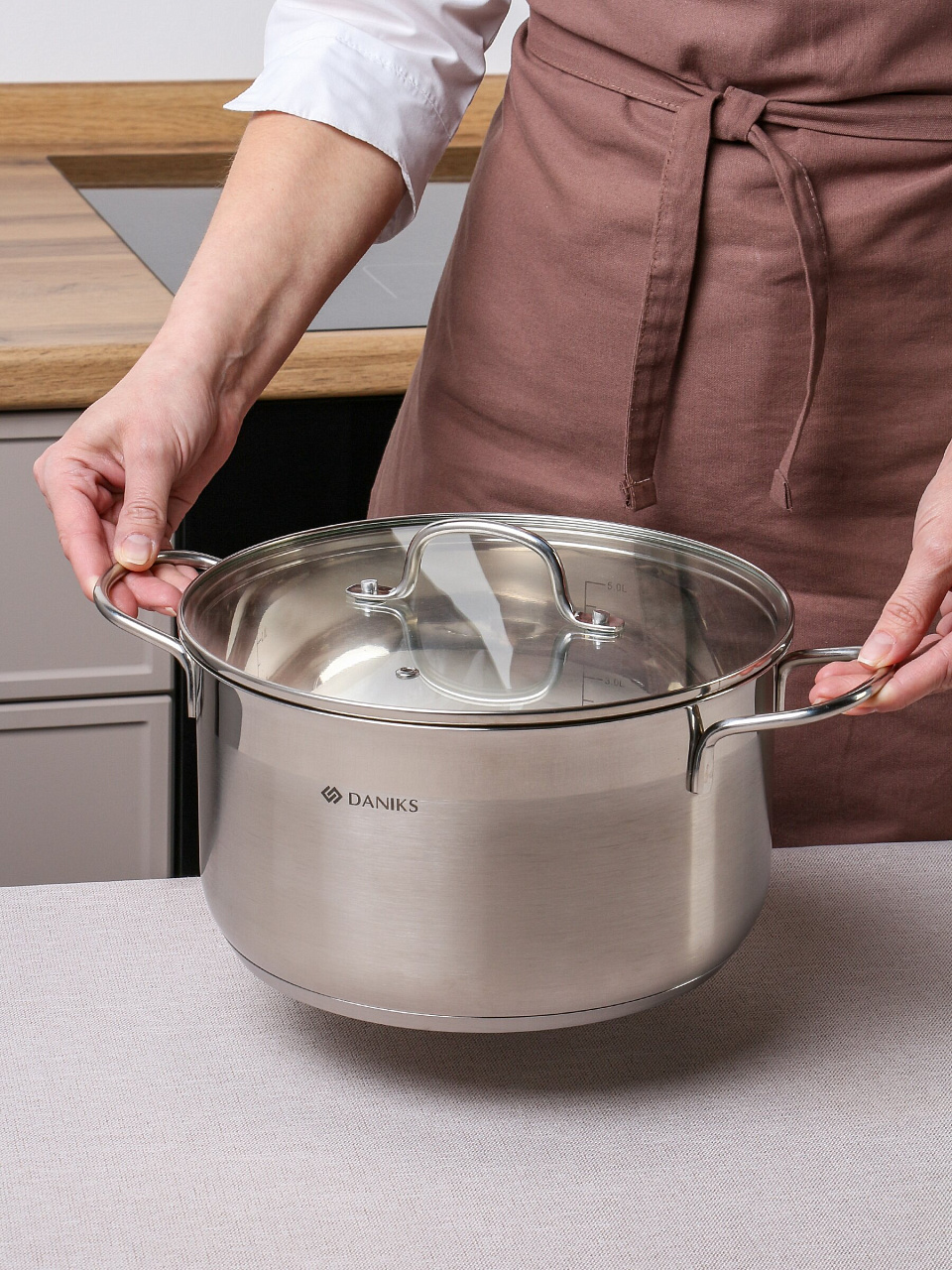 Кастрюля Daniks Нолан 6.1 л из нержавеющей стали: идеальный выбор для семьи и дачи — долговечность, универсальность, выгодная цена.