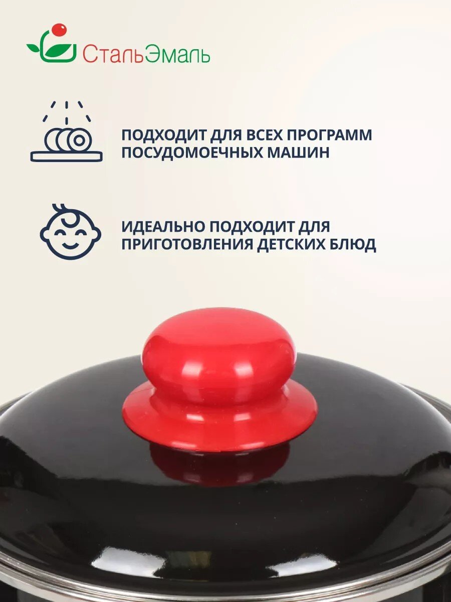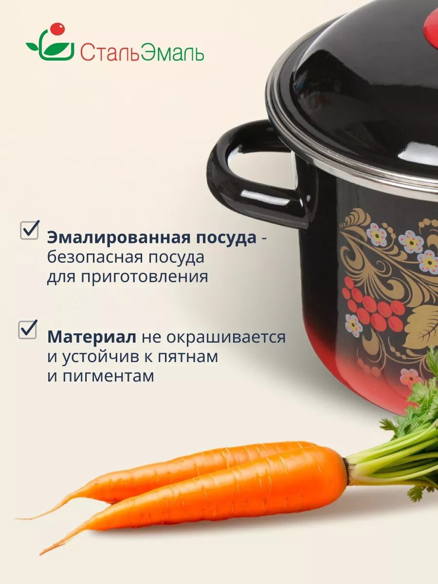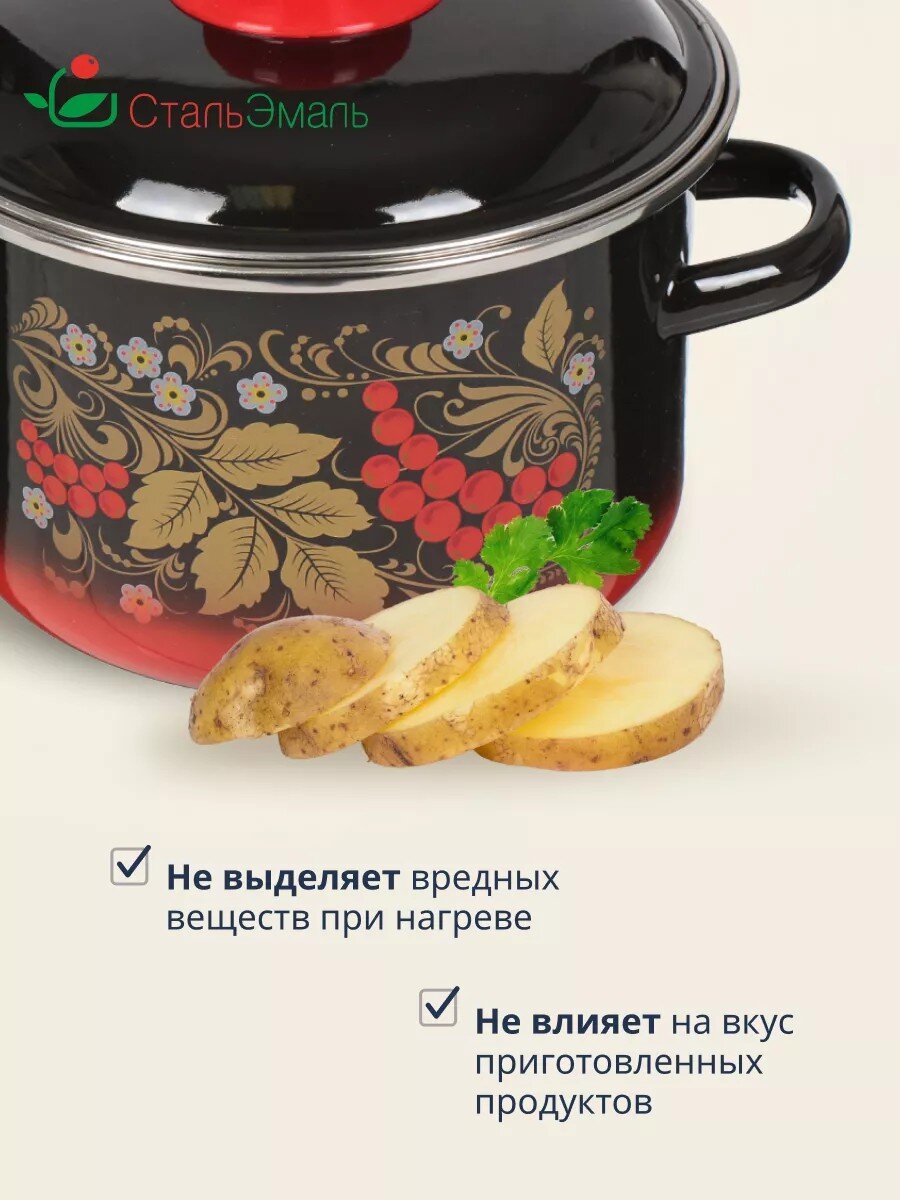 Кастрюля эмалированная СтальЭмаль Рябина 2 л — универсальное решение для кухни и дачи: подходит для индукционных плит, безопасна, легко моется, стильный дизайн.