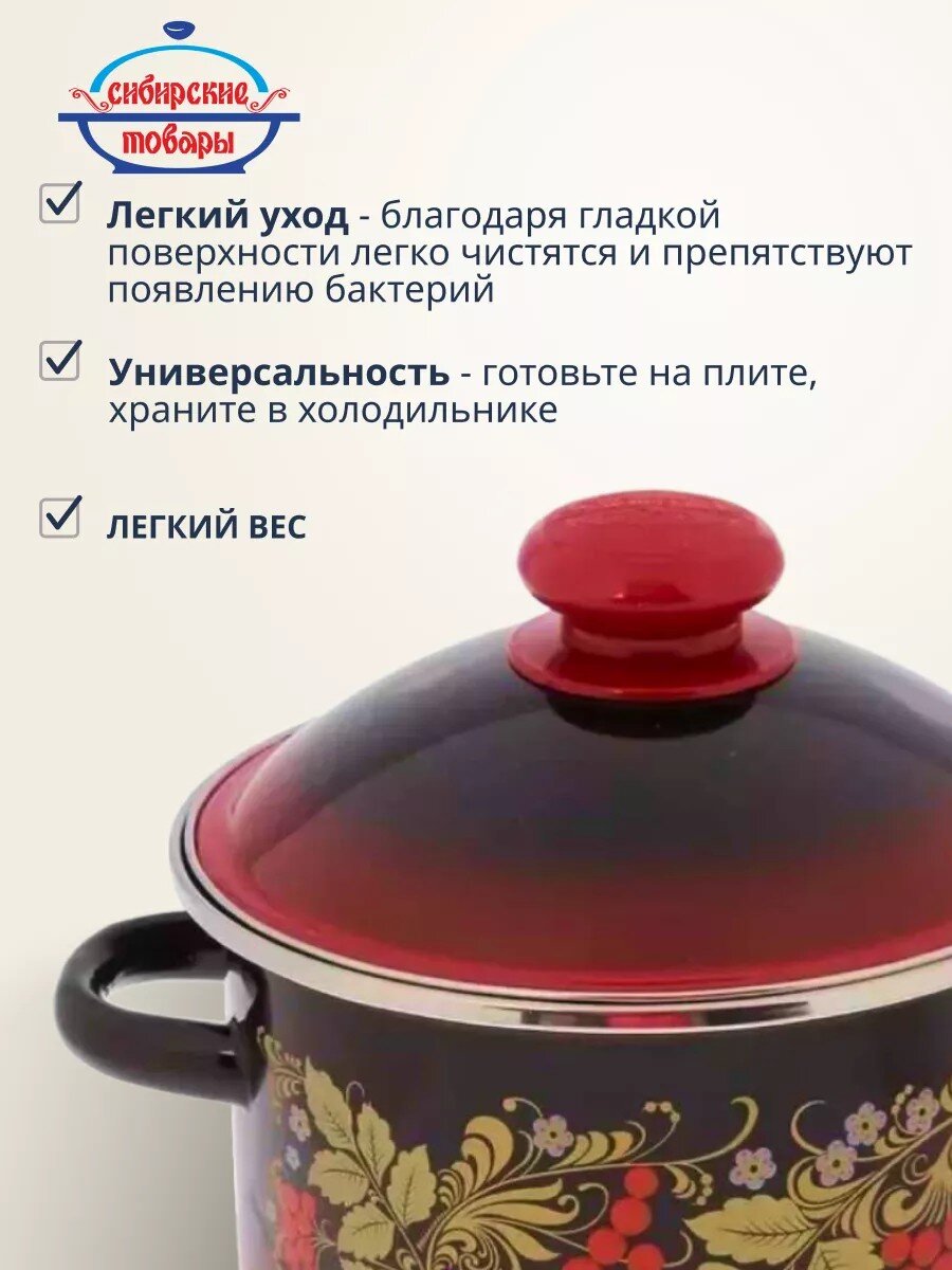 Вы можете приобрести «Кастрюля эмалированная сталь, 2 л, крышка сталь, цилиндрическая, Сибирские товары, Рябинушка, 7MD161M, индукция» и другие товары в нашем интернет-магазине в Смоленске по низким ценам и с бесплатным самовывозом.