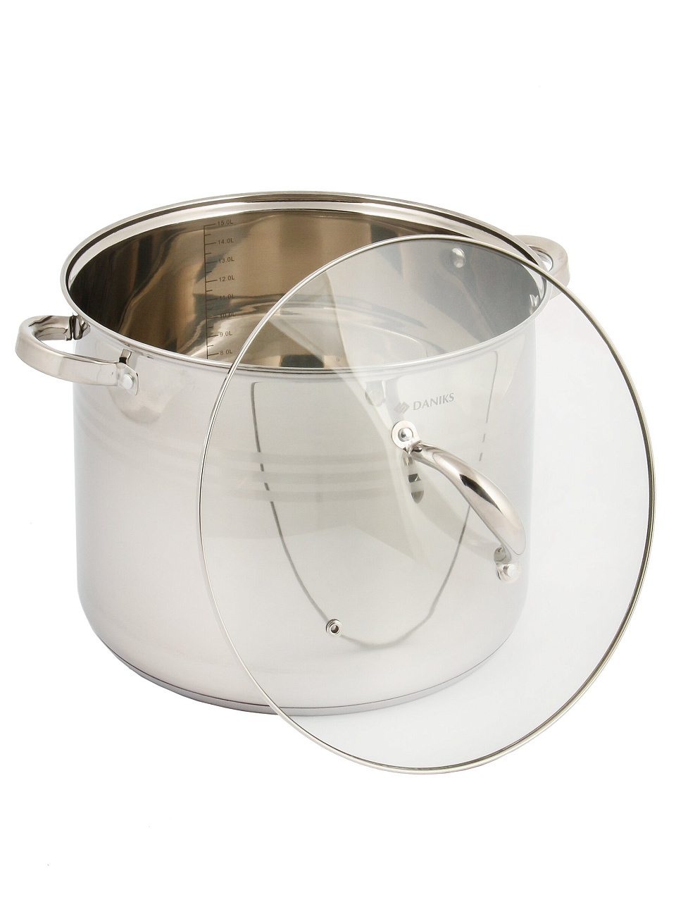 Кастрюля Daniks 16 л из нержавеющей стали с капсульным дном и стеклянной крышкой — надежное решение для больших порций, подходит для индукции, мытья в ПММ, общепита и дома.