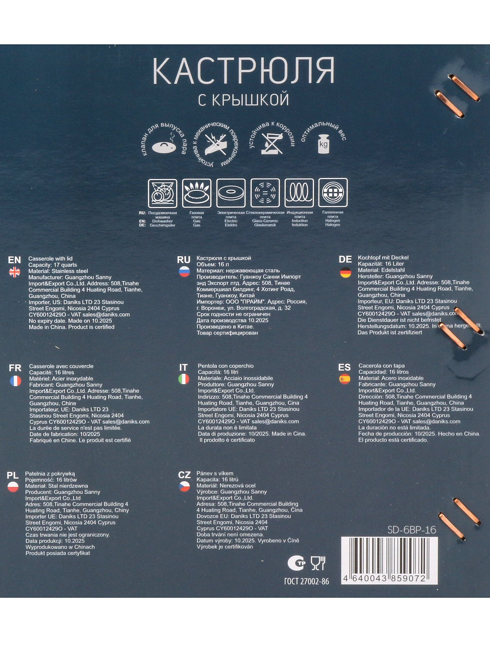 Вы можете приобрести «Кастрюля нержавеющая сталь, 16 л, крышка стекло, Daniks, Общепит, SD-6BP-16, индукция» и другие товары в нашем интернет-магазине в Таганроге по низким ценам и с бесплатным самовывозом.