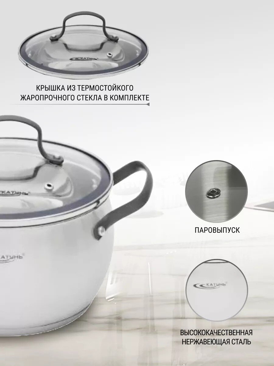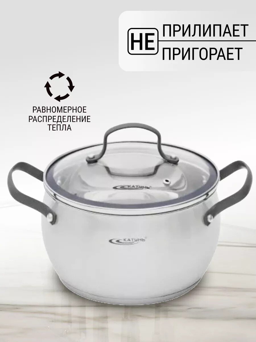 Вы можете приобрести «Кастрюля нержавеющая сталь, 3.2 л, крышка стекло, Катунь, Агата, КТ19-D-20, индукция» и другие товары в нашем интернет-магазине в Астрахани по низким ценам и с бесплатным самовывозом.