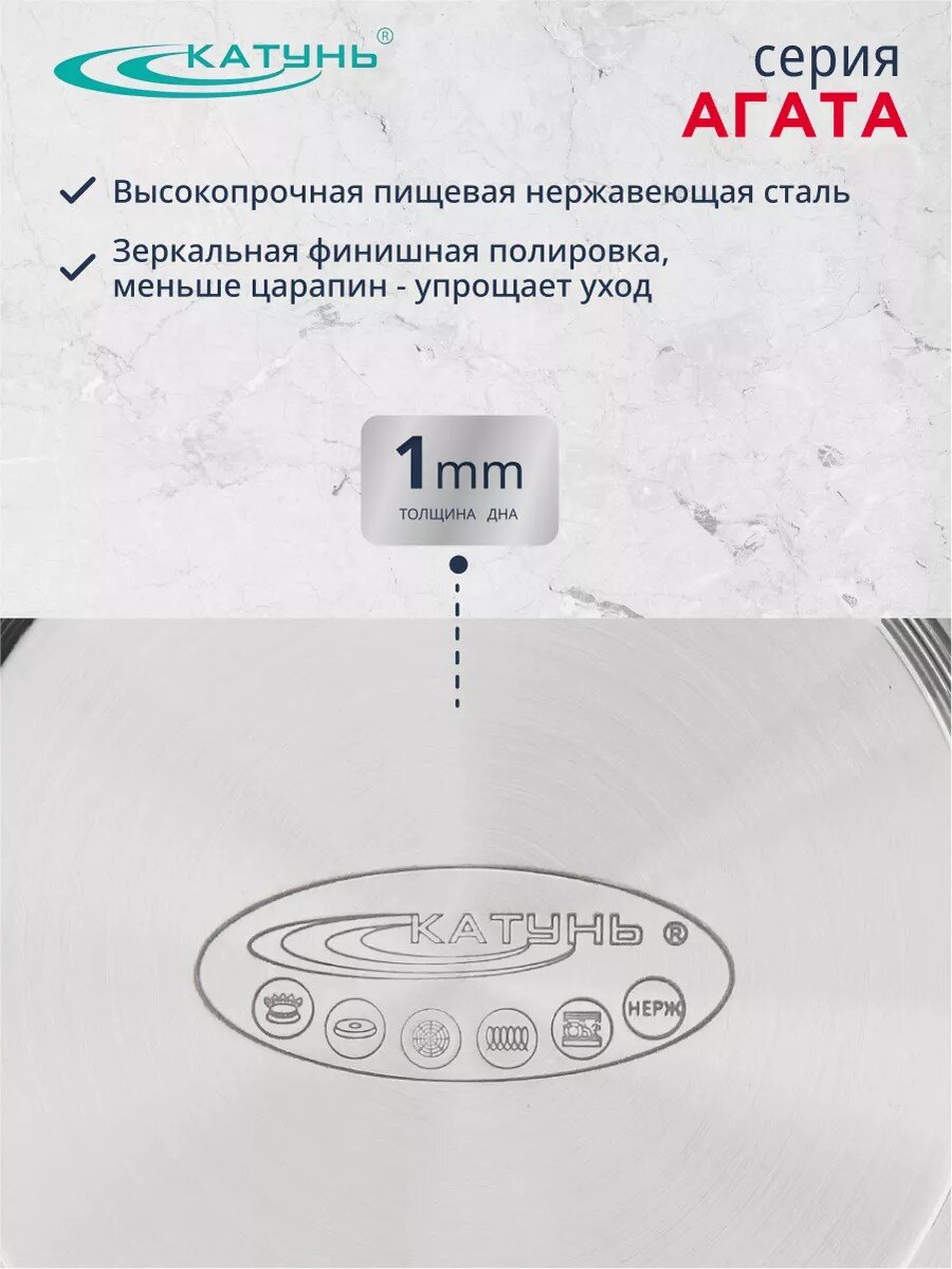 Кастрюля линейки "Агата" изготовлена из высококачественной нержавеющей стали.