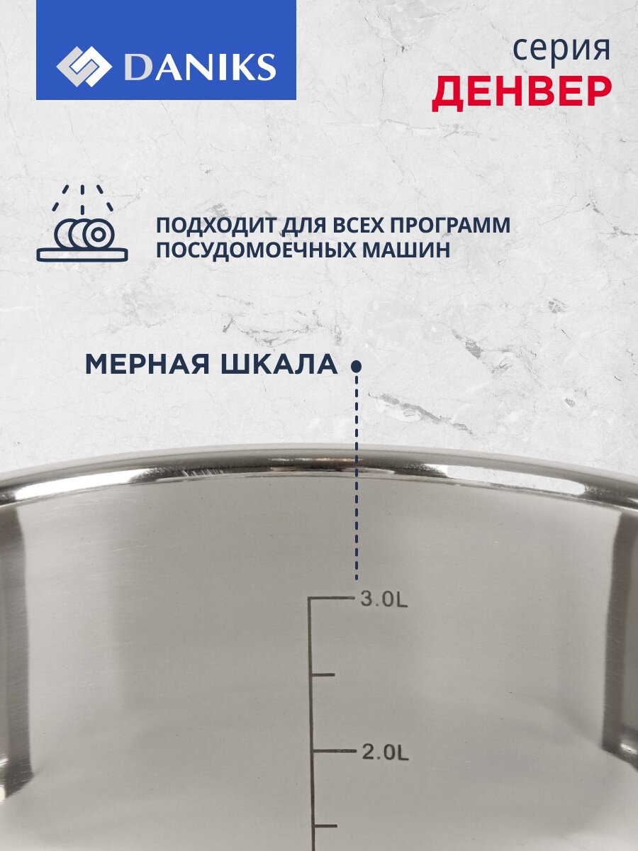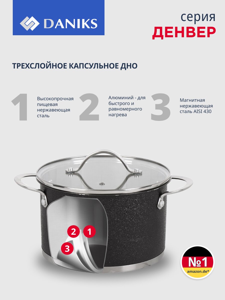 Кастрюля Daniks Денвер 3.9 л из нержавеющей стали с капсульным дном — оптимальное решение для индукционных плит, быстрой варки и стильной кухни.