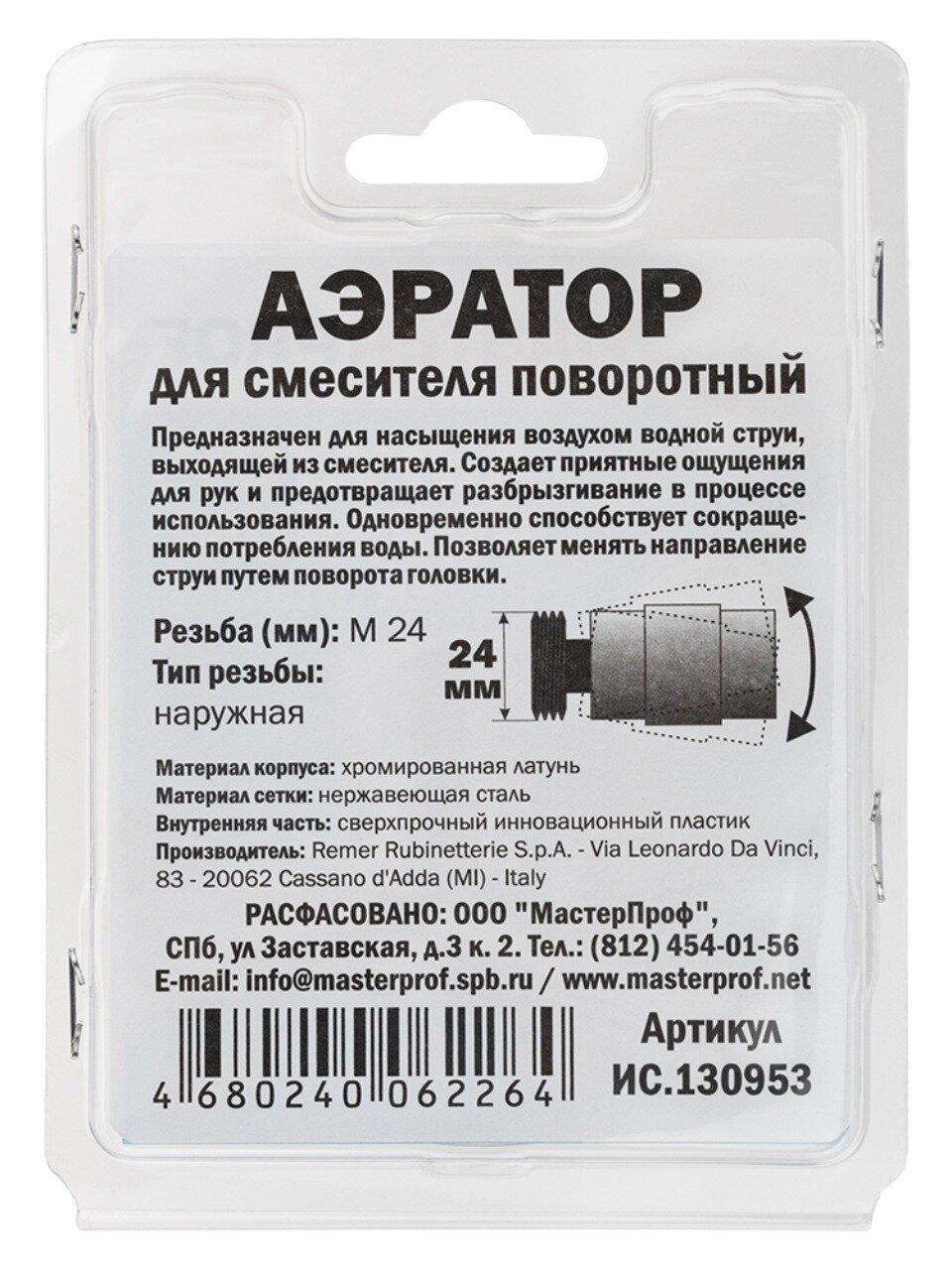 Аэратор М24 на шарнире MasterProf — экономьте воду до 50% и управляйте потоком под любым углом. Идеальное решение для кухни и дачи.