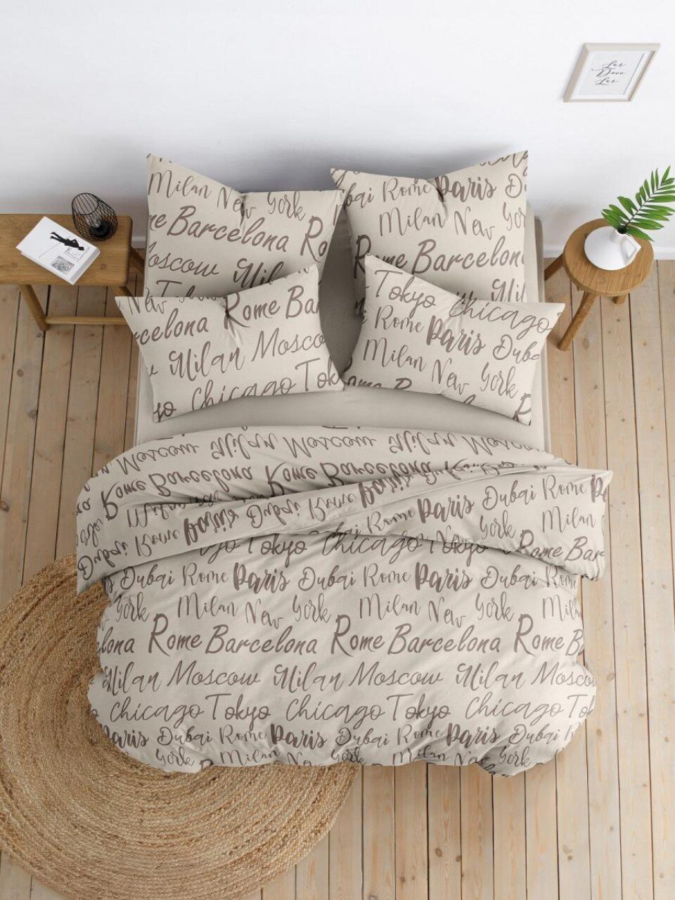 Если вы ищете, какое постельное белье выбрать для комфортного сна, обратите внимание на комплект «Ночь нежна» из натуральной бязи. Этот материал хорошо пропускает воздух, не вызывает раздражения, а благодаря технологии окрашивания рисунок с надписями остается ярким долгое время. Размеры комплекта оптимальны для двухспальной кровати, европростыня плотно ложится даже на высокий матрас.