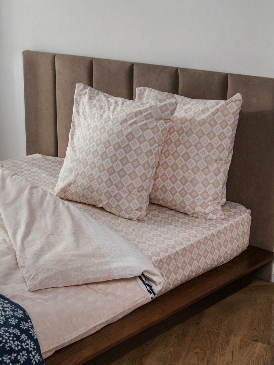 В комплекте простыня размером 215х220 см и пододеяльник 175х215 см. Наволочки — 70х70 см, всего 2 штуки.