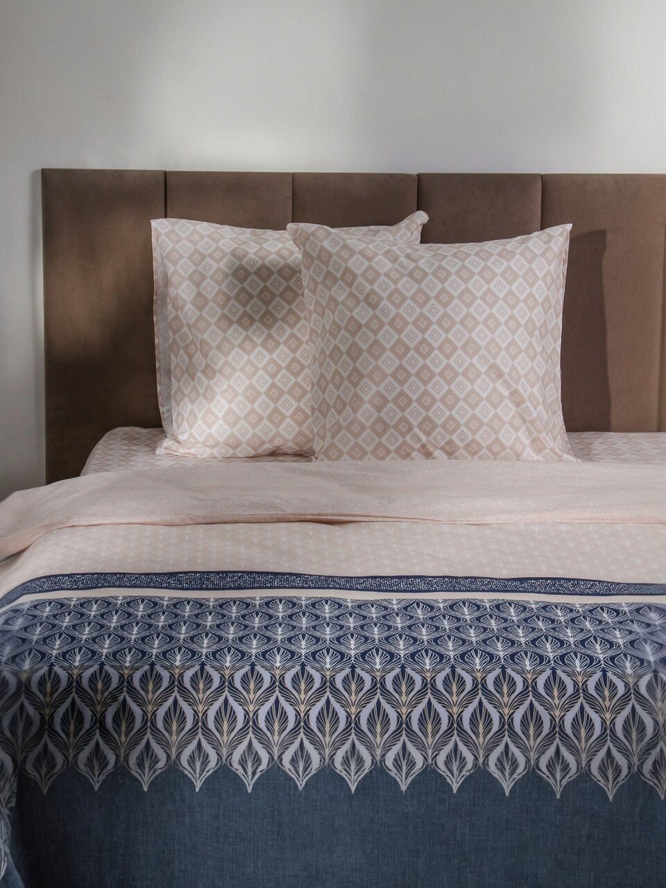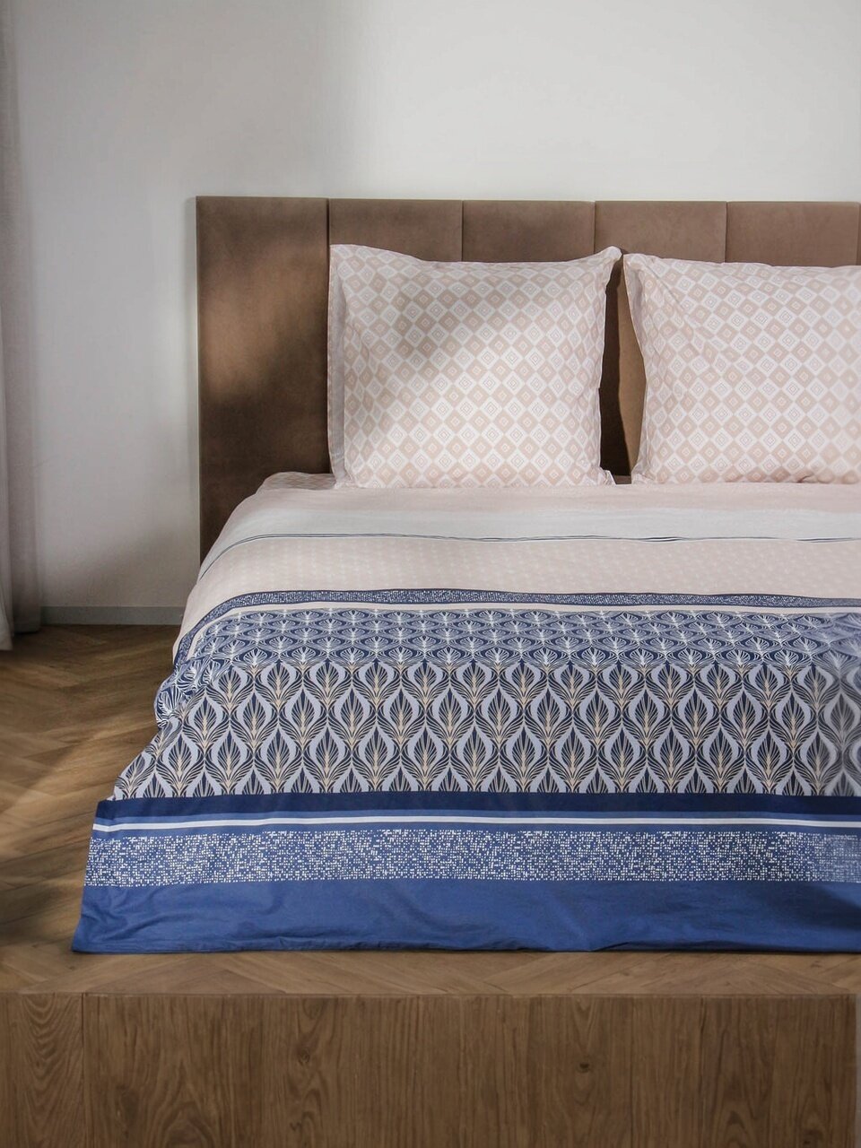 - Уникальный дизайн: глубокий синий цвет и современный орнамент делают комплект акцентом любой спальни.